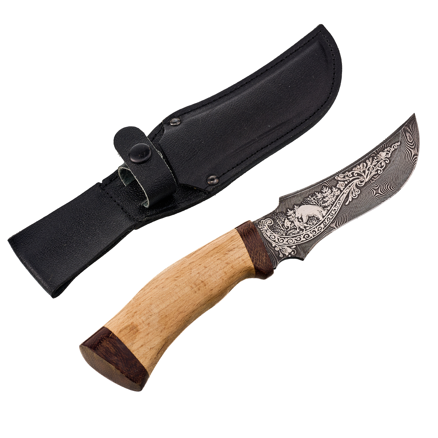 Материалы: дамасская сталь, дерево, текстолит, кожа.