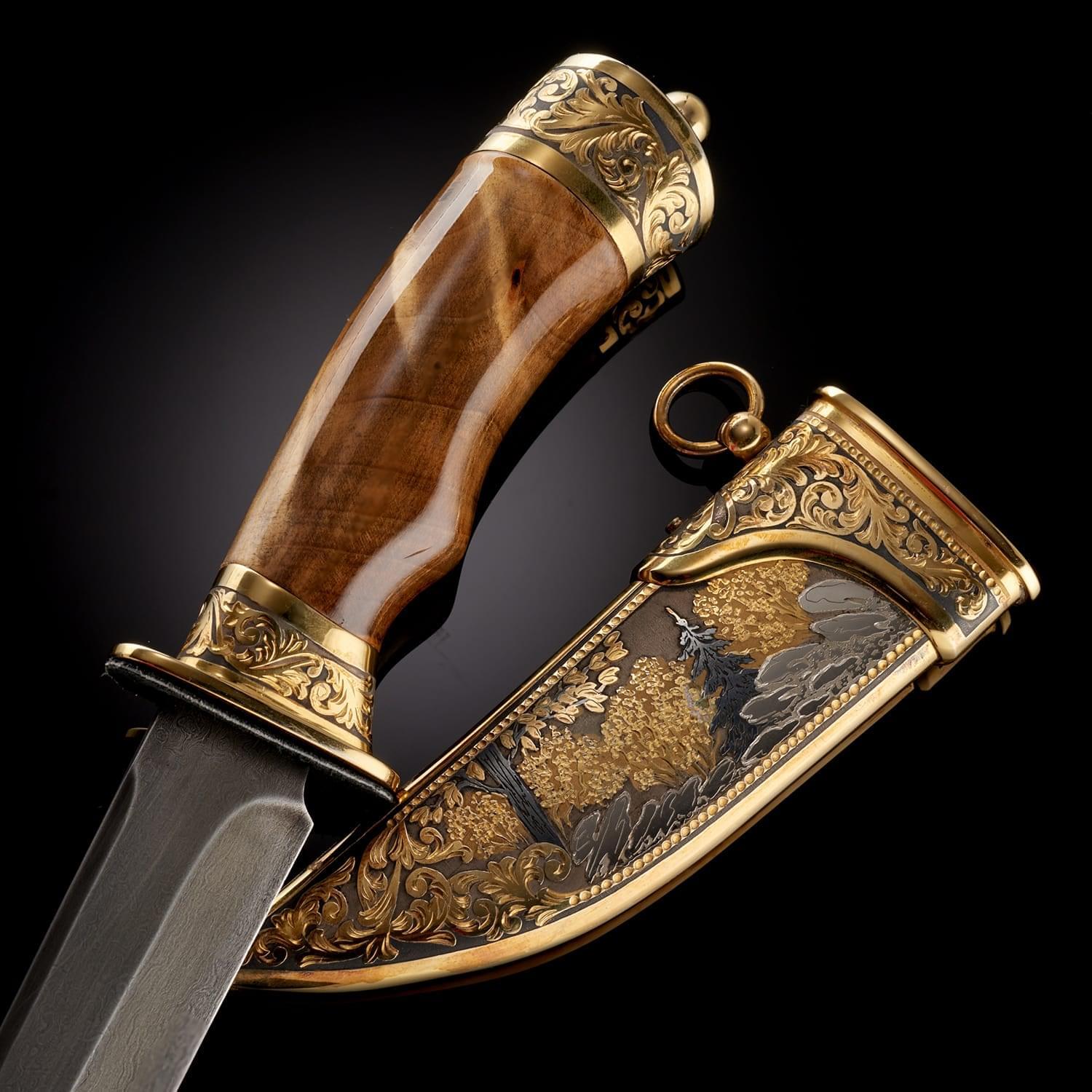 Материалы: сталь ЭИ-107 (40Х10С2М), латунь, никель, золото 999,9*, эмаль, дерево.