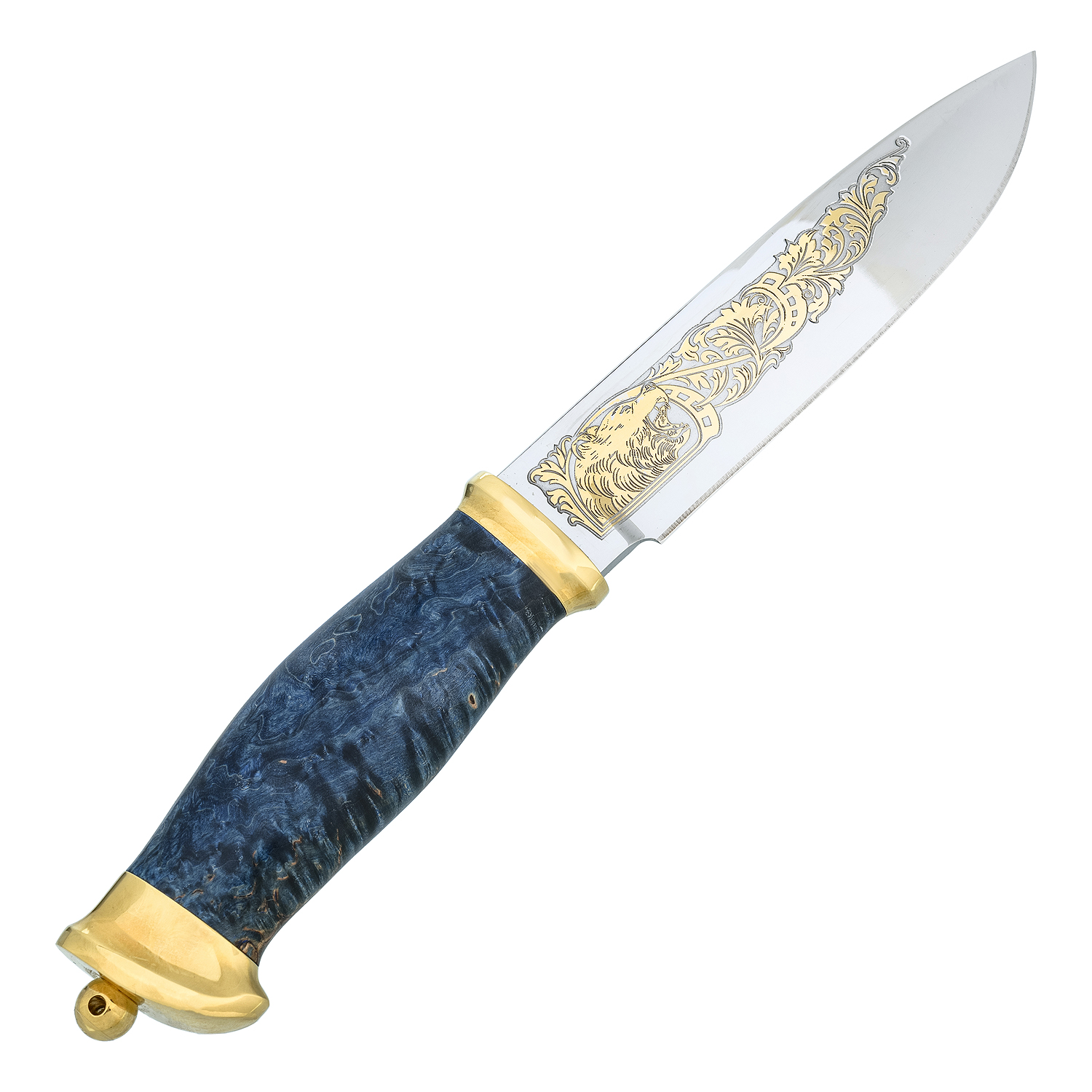 Материалы: сталь ЭИ-107, латунь, золото 999,9*, стабилизированная береза, кожа.