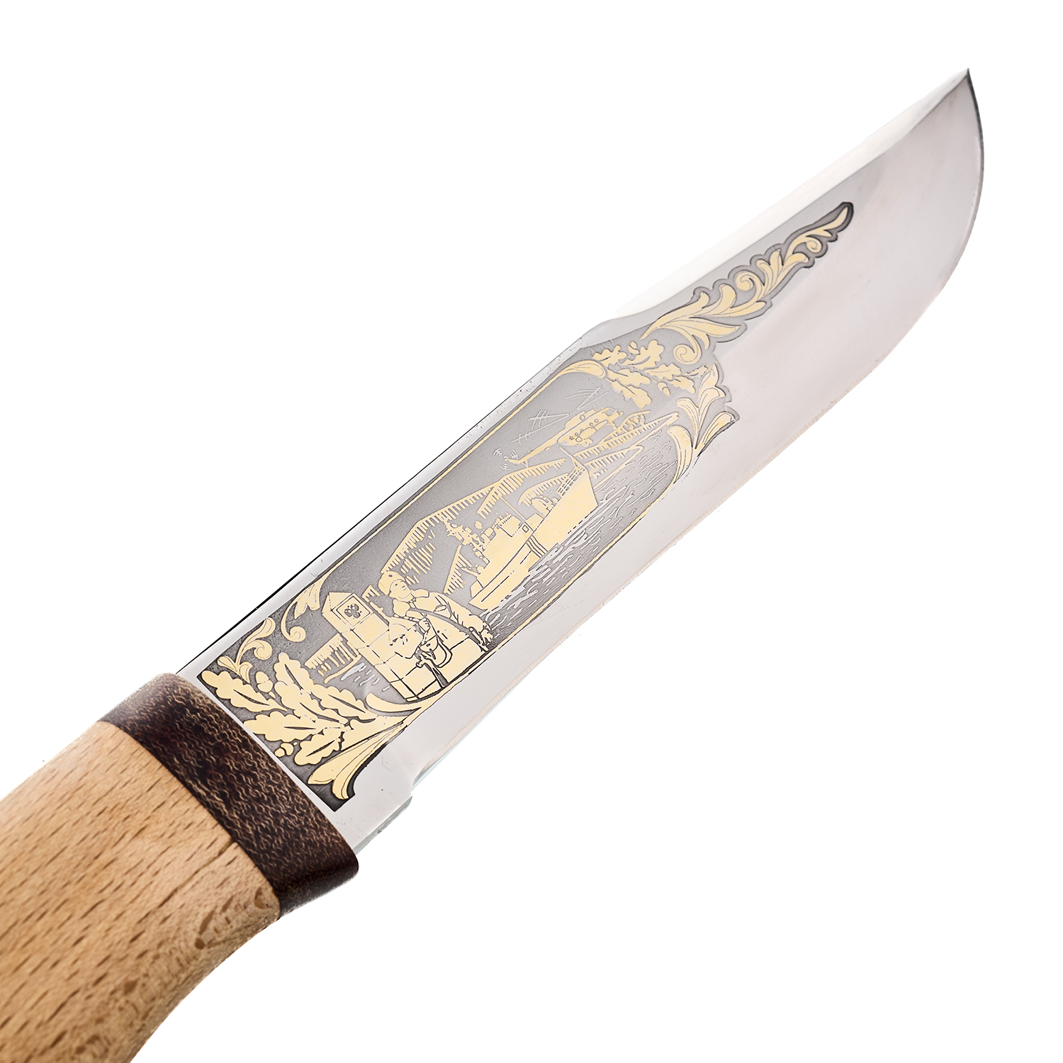 Материалы: сталь 40х10с2м, текстолит, дерево, золото 999,9*, кожа.