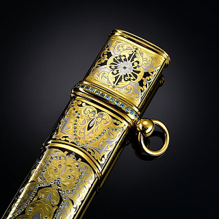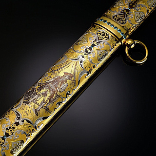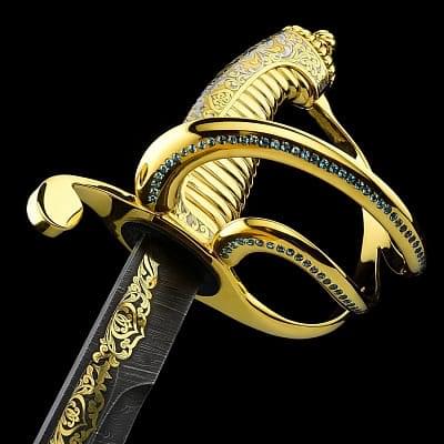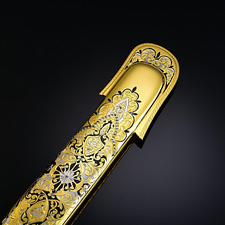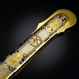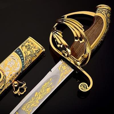 Сабля, как вид холодного оружия, появилась в конце VII века в Азии и на Ближнем Востоке. Впервые ими стали пользоваться кочевые народы, так называемые воины - сарацины, которым требовалось очень легкое оружие, способное поразить врага на скаку. Изготовить первые сабли златоуст, достаточно легкие, чтобы не стеснять движений, и достаточно прочные, чтобы нанести удар, позволило использование специальной стали. В дальнейшем именно этот вид стали получит название дамасская сталь. Данный вид оружия испокон веков активно использовались в качестве элемента вооружения во многих странах. Учитывая обширную географию распространения, сабли различных войск приобрели свои определенные особенности и отличия, как по размеру, так и по кривизне и клинку. В нашей стране особое распространение получили сабли златоуст. Именно сабля использовалась воинами, проживающими на территории современной России. Это оружие на Руси преимущественно использовалось кавалерией, что объясняет изогнутое лезвие и одностороннюю заточку, что позволяло им с максимальной эффективностью наносить рубящие удары, сидя верхом на лошади. Конечно, в наши дни данное оружие используются лишь в качестве принадлежности парадной формы. Мы представляем Вам полную коллекцию эксклюзивного оружия Златоуст: ножи, кинжалы, булавы, мечи, кортики, даги и «набор топор и нож». Наш магазин дает Вам гарантию качества на каждое изделие, все в наличии, срочная доставка по Москве.