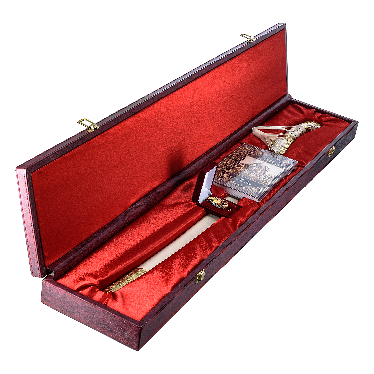 Подарочный набор с шашкой, книгой и наградным орденом.