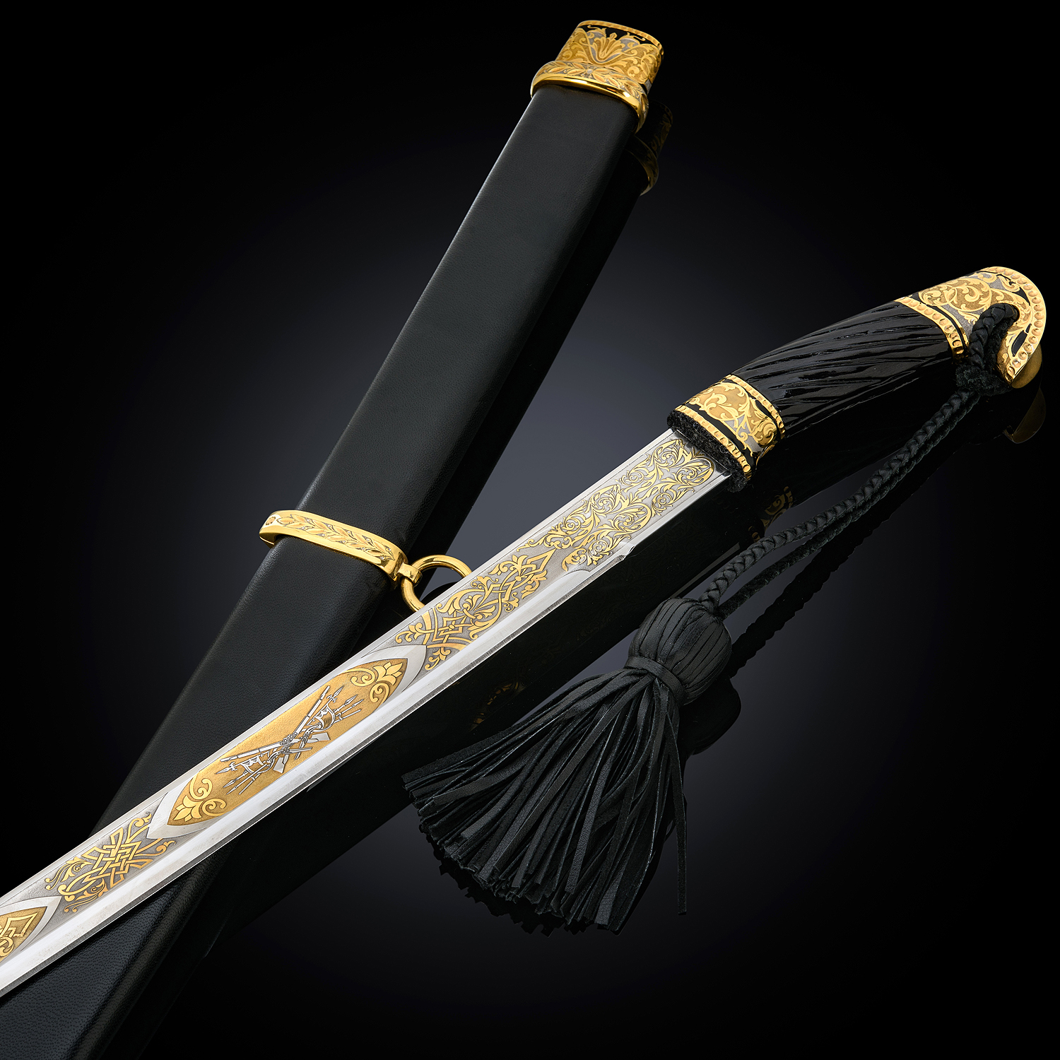 Материалы: сталь ЭИ-107, латунь, никель, золото 999,9*, кожа.