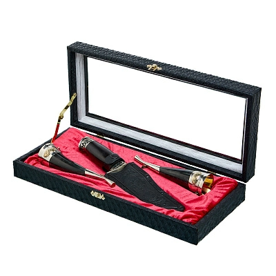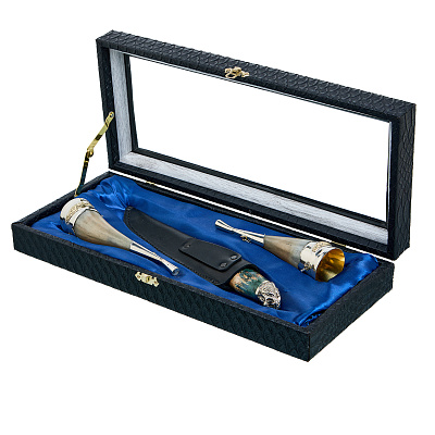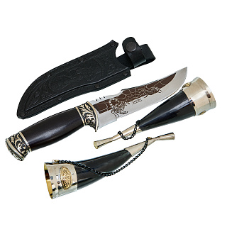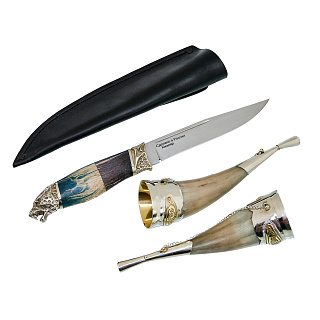 Подарочный набор с ножом и рожками для вина «Ягуар»