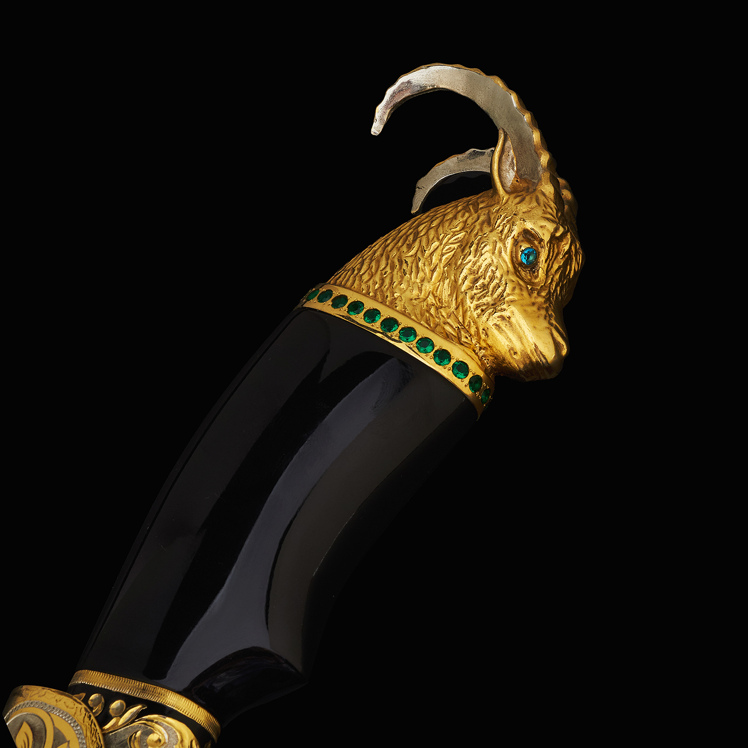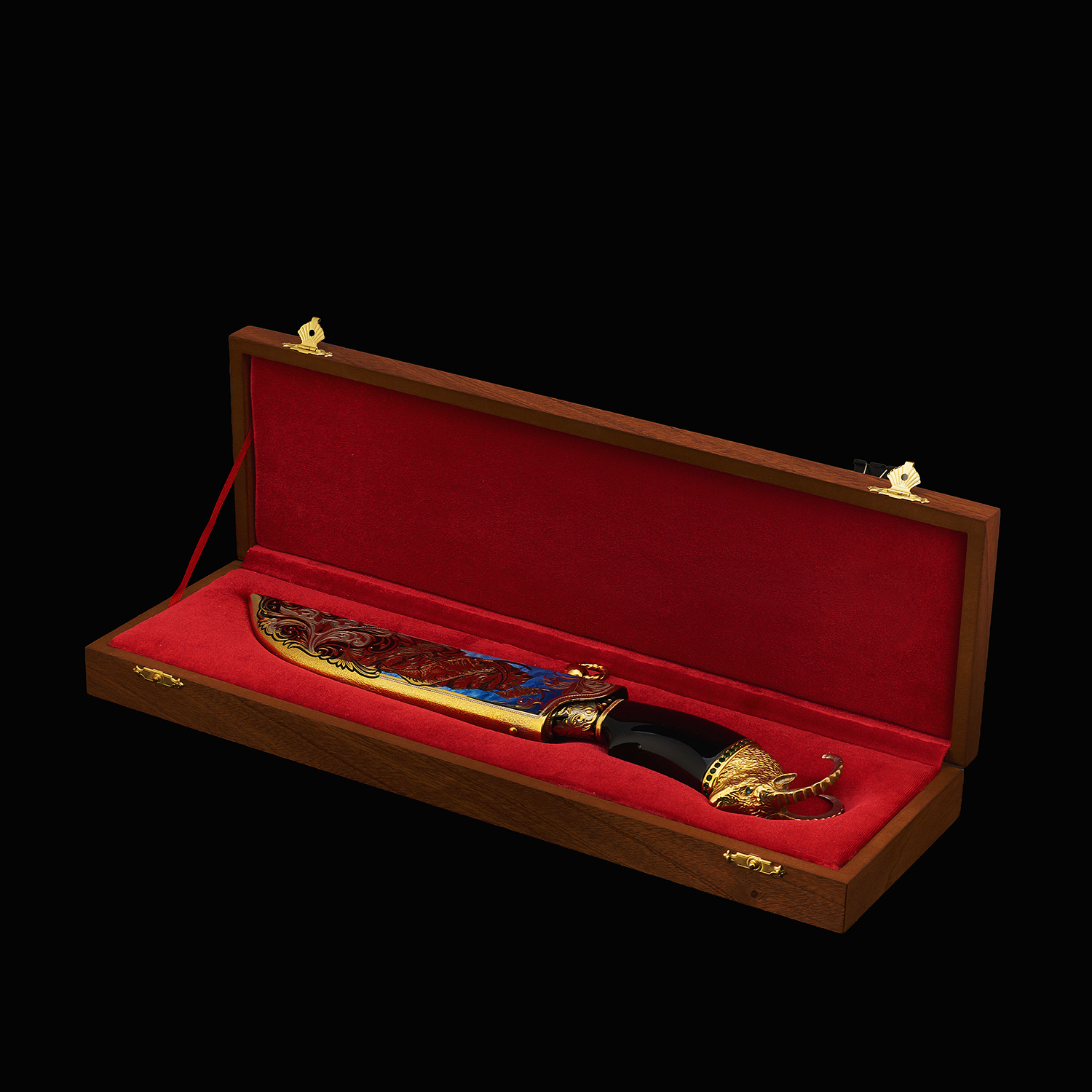 Материалы: дамасская сталь, латунь, никель, золото 999,9*, эмаль, фианиты, дерево.