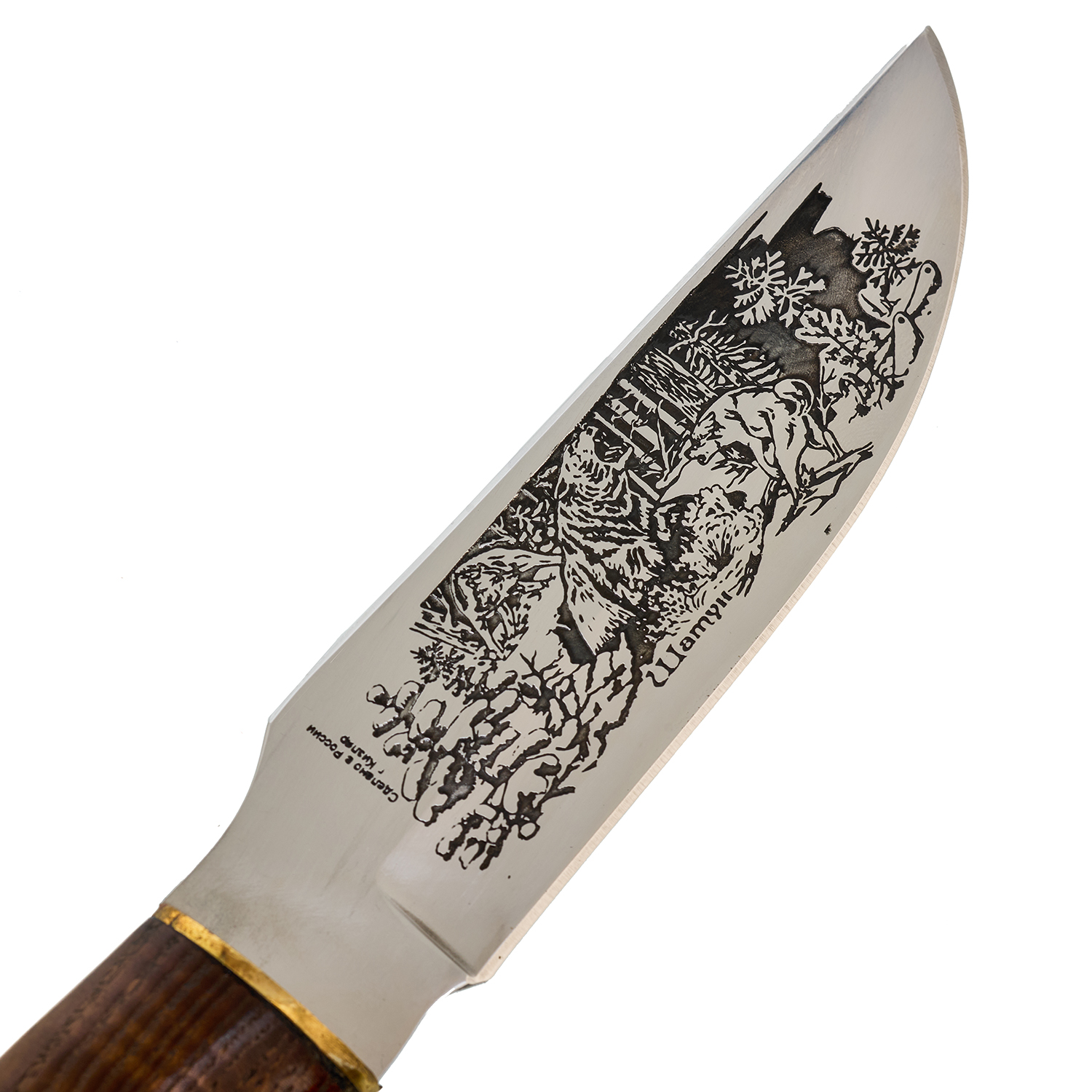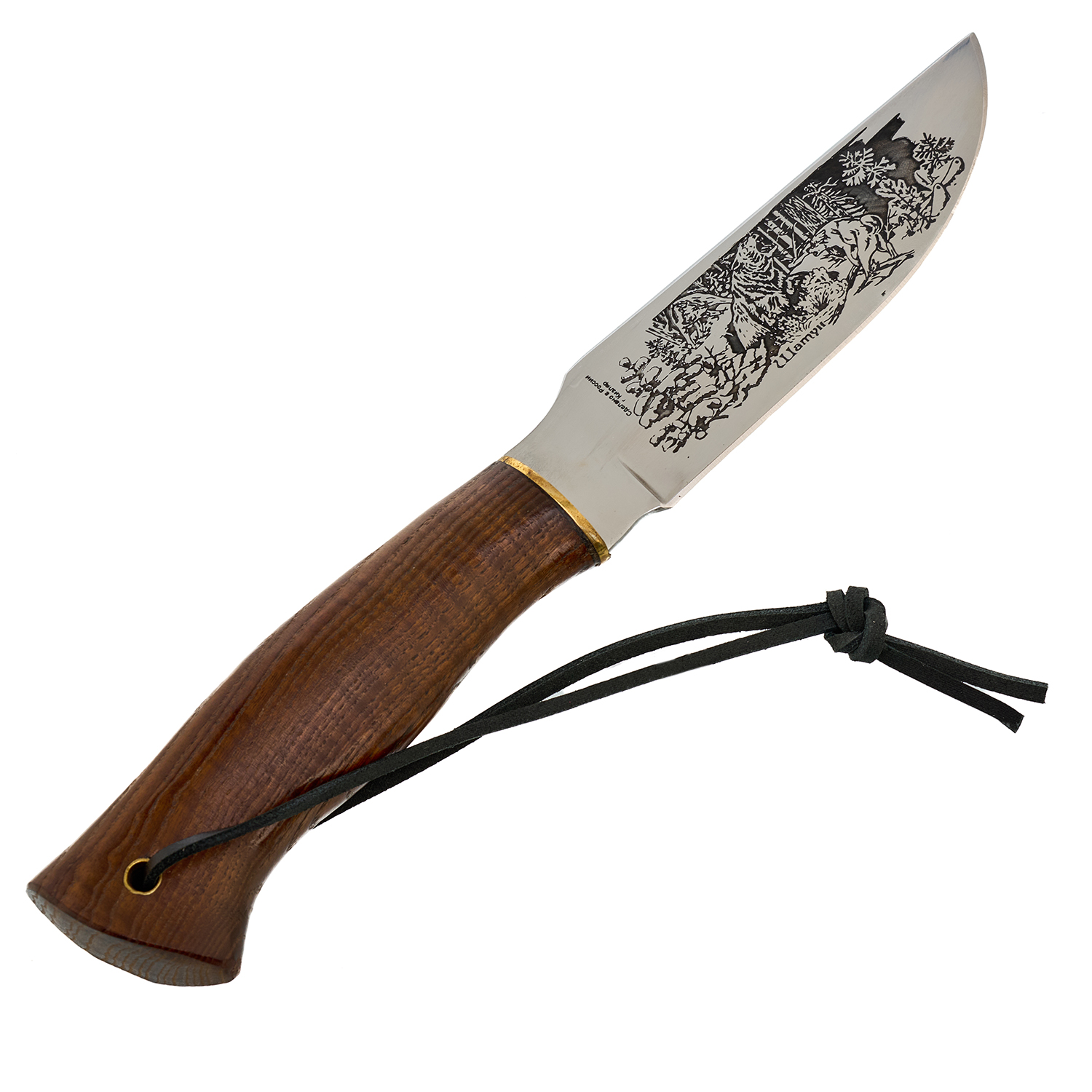 Материалы: сталь AUS-8, латунь, дерево, кожа.
