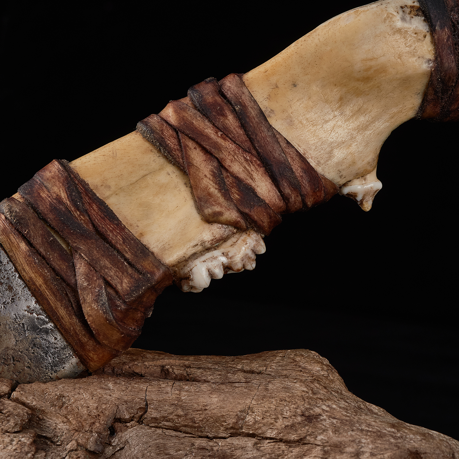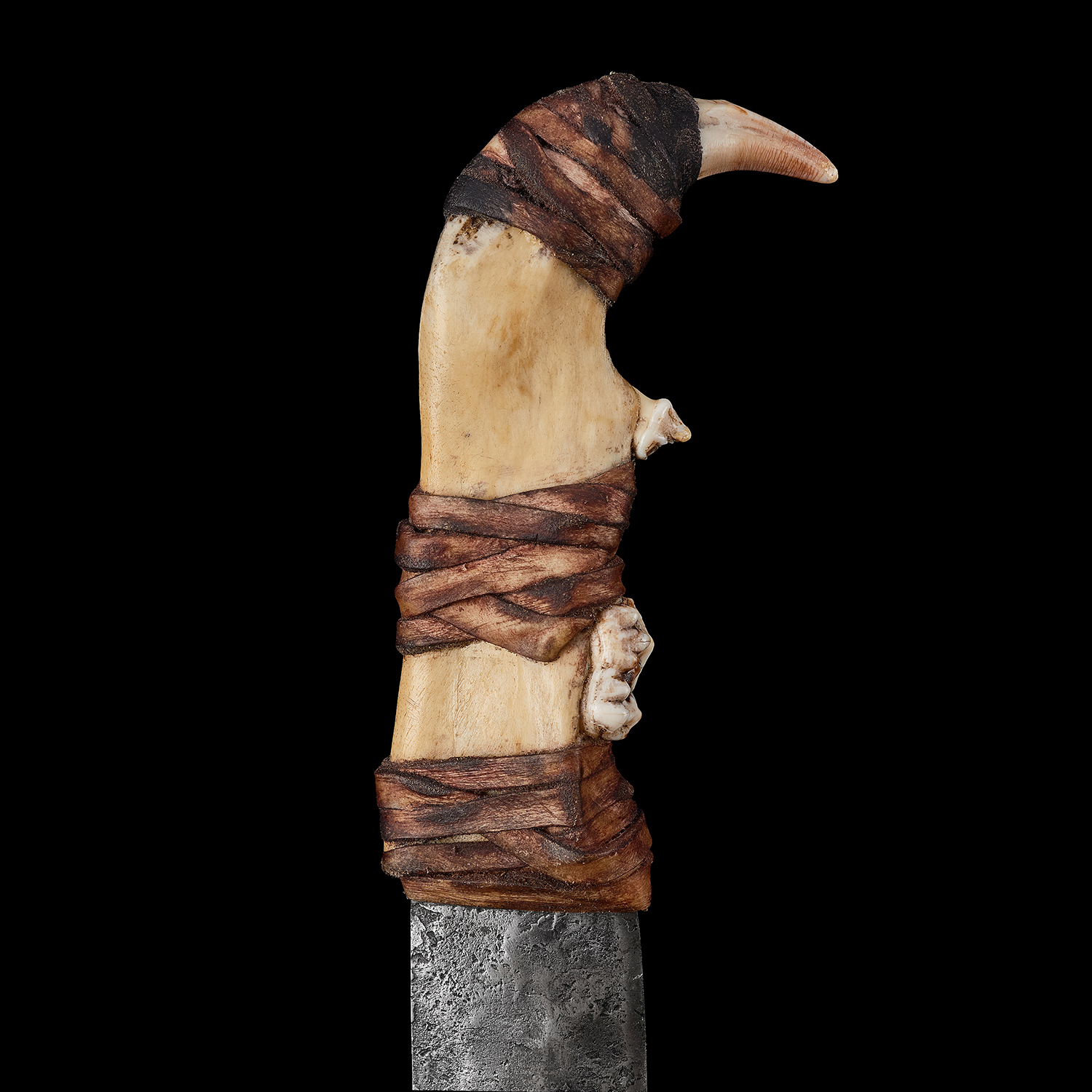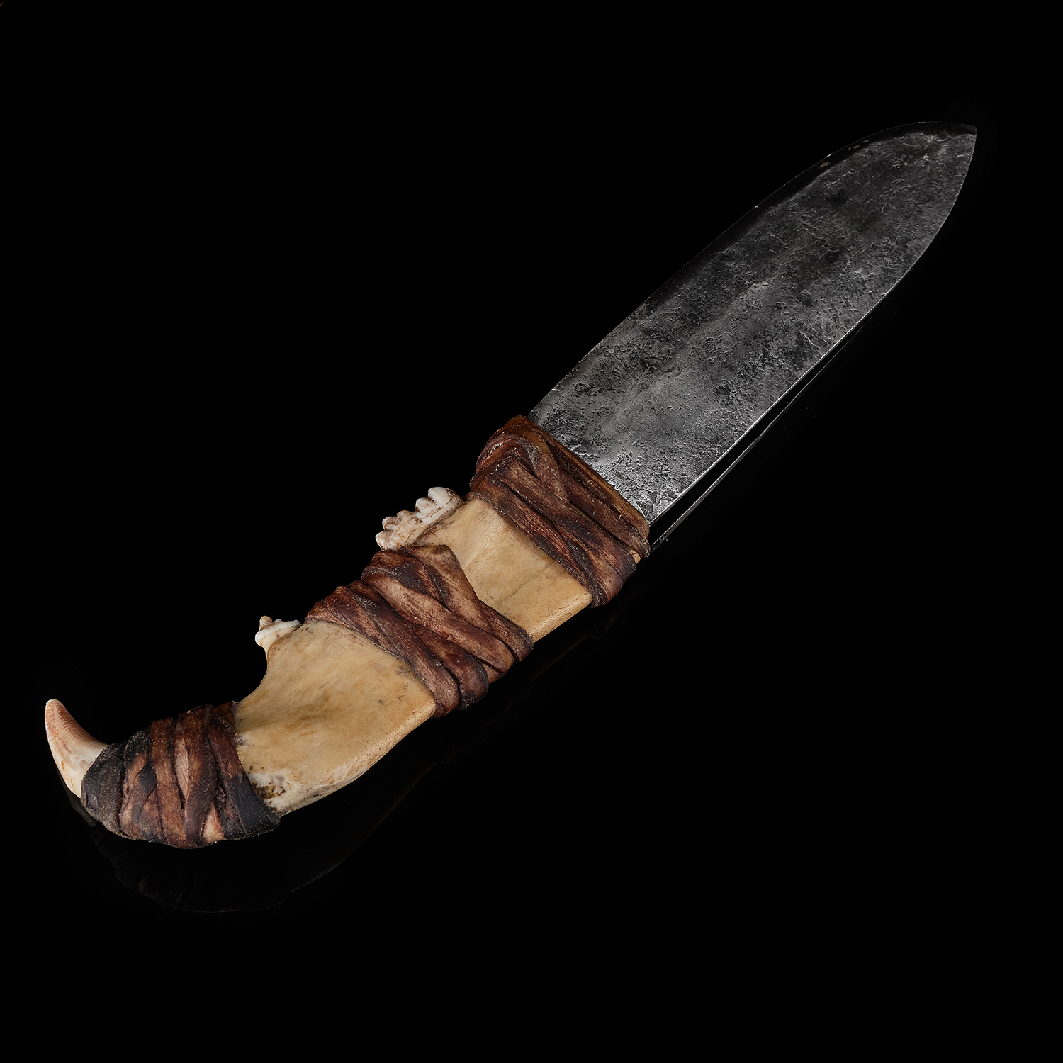 Материалы: сталь 65Г, челюсть медведя, тутовик.