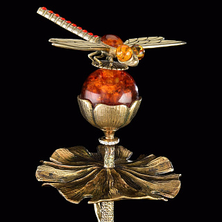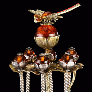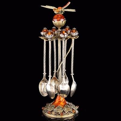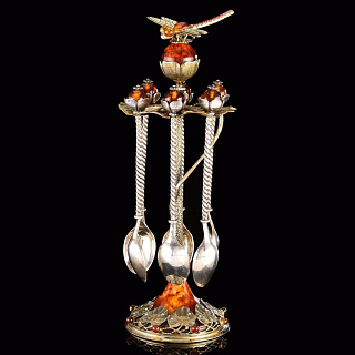 Деликатесный набор из янтаря «Шар». Серебро 875 *