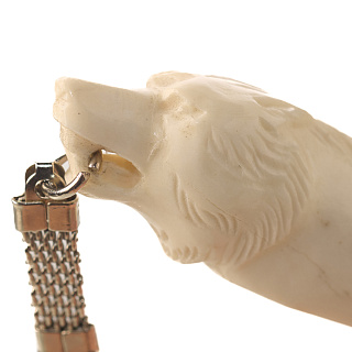 0025406-7.110 Сувенир БРЕЛОК «ПЕС БАРБОС» 3см Латунь (вставка Янтарь)