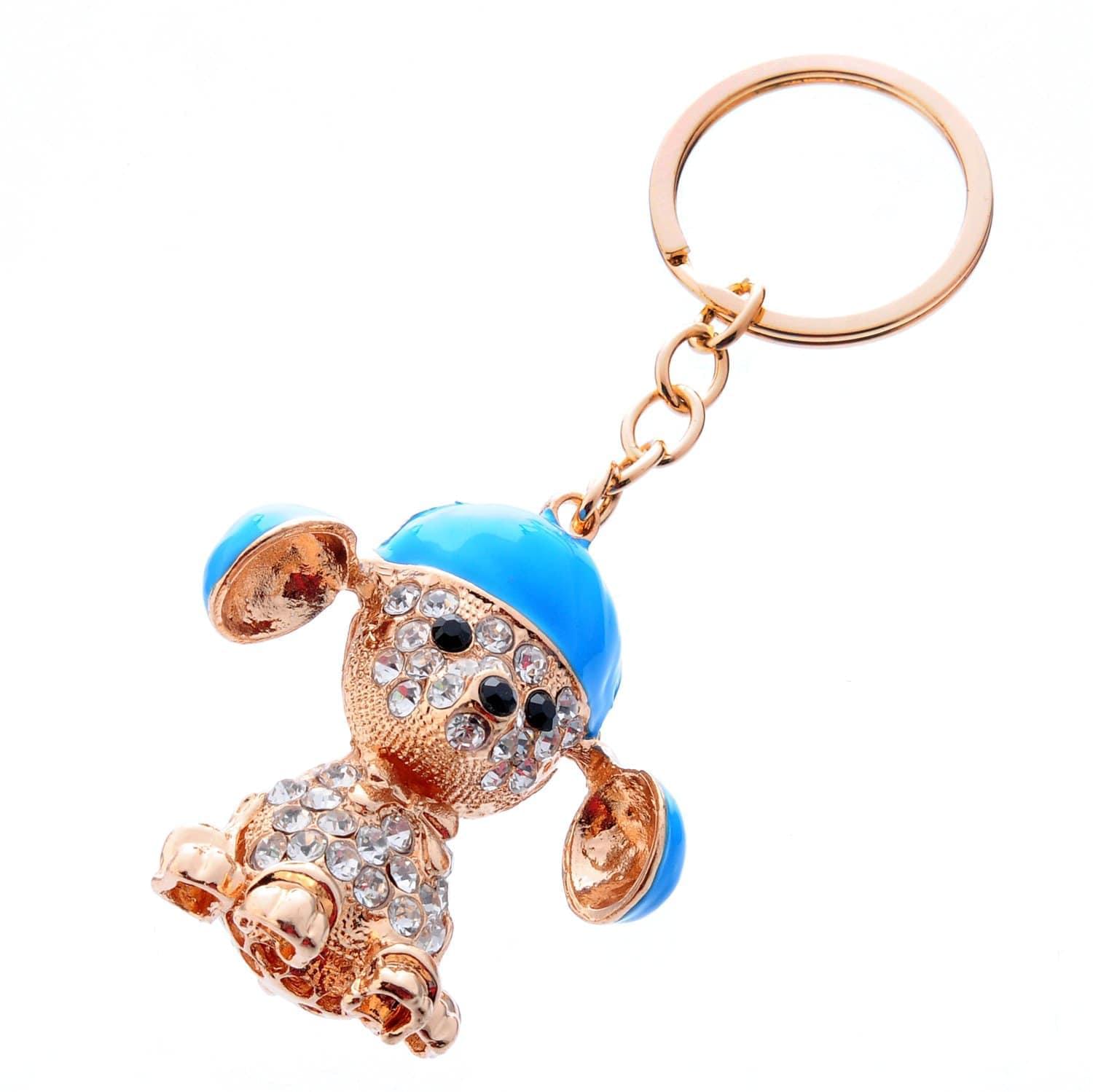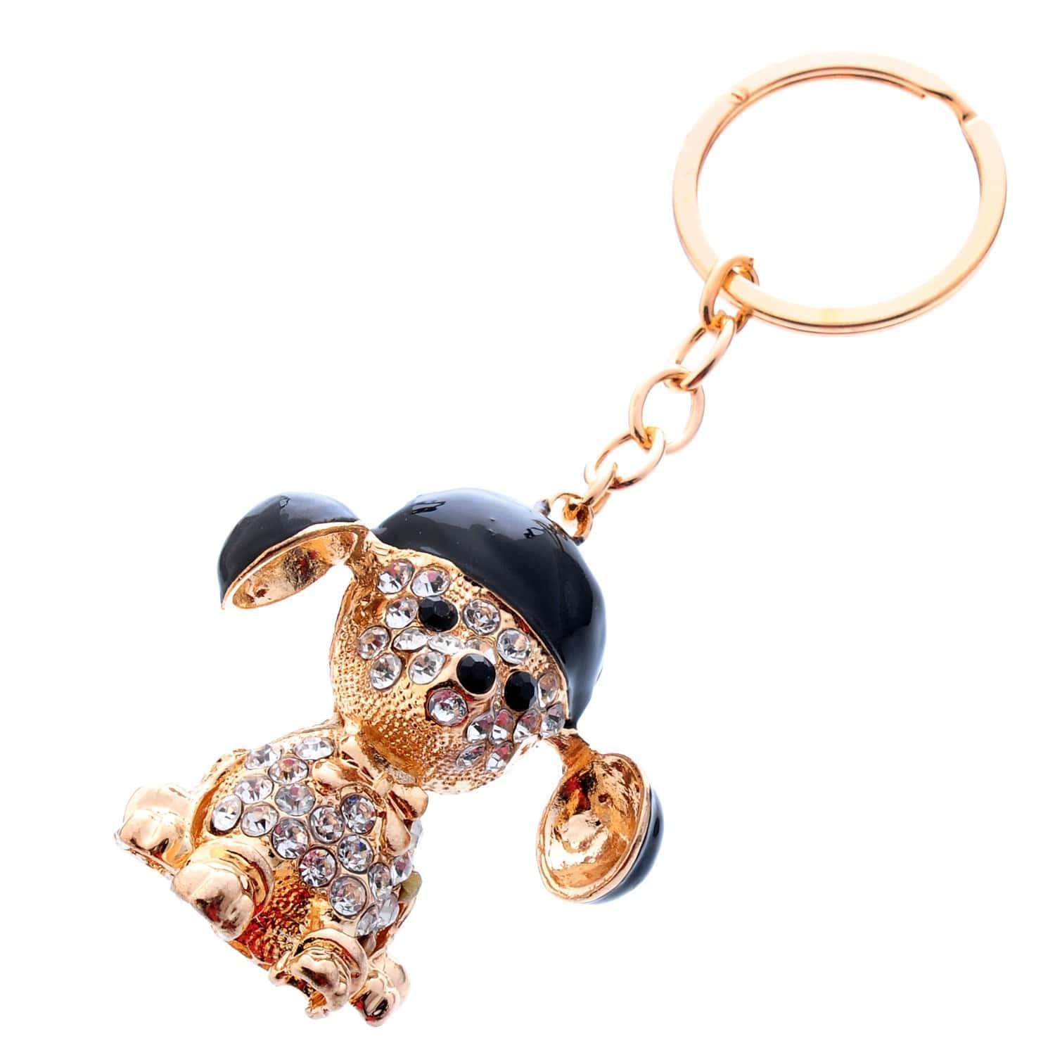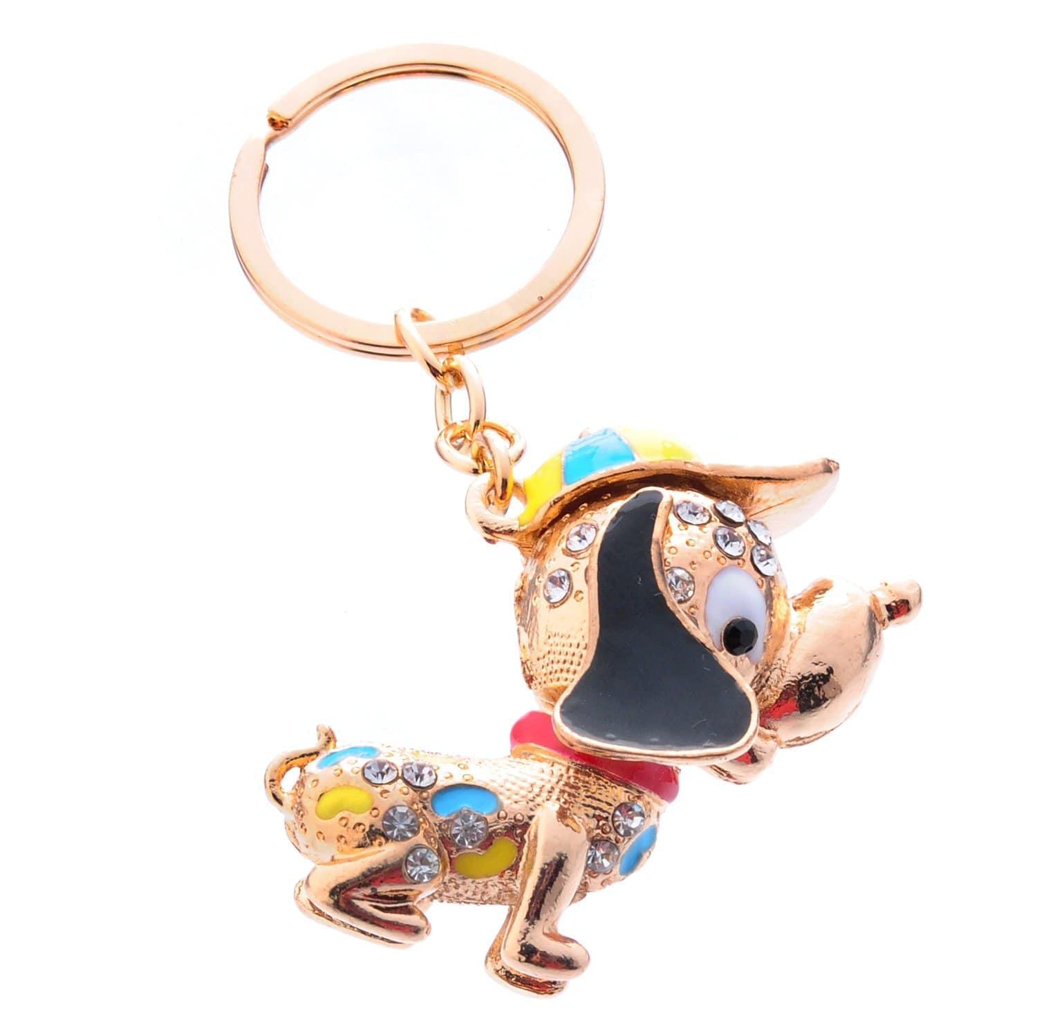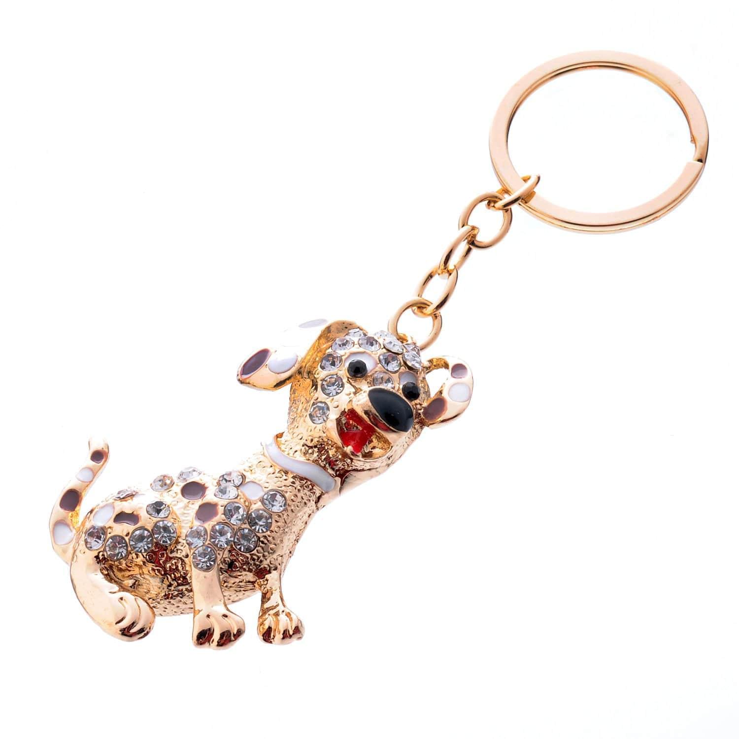 Аксессуар для украшения связки ключей - ключей дома и автомобиля, - брелок с подвеской в виде анималистической скульптуры собачки на цепочке с карабином. Скульптура малой формы сделана из латуни по эскизу, украшена разноцветным стеклом и красками. И цепочка с карабином, и подвеска тонированы позолотой.