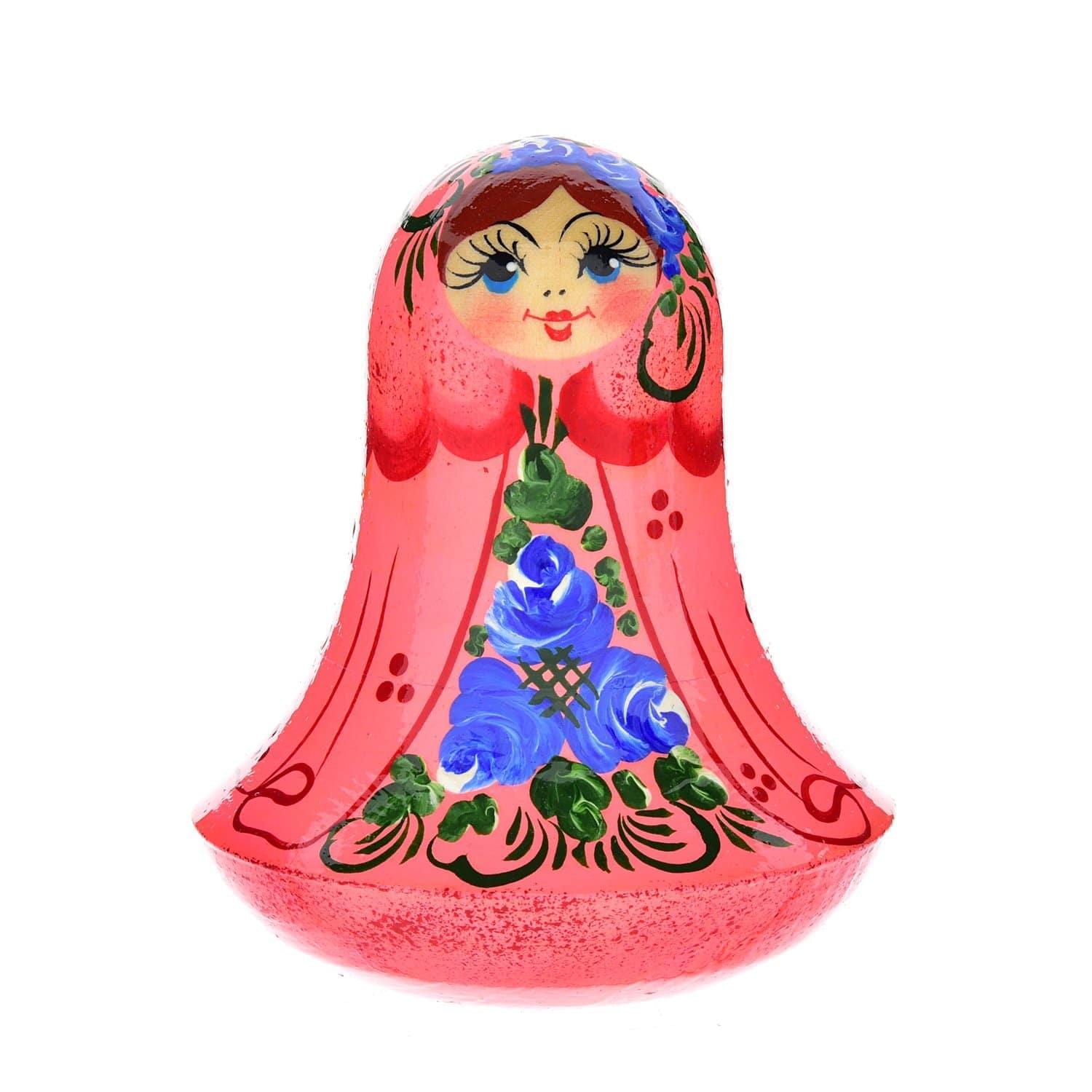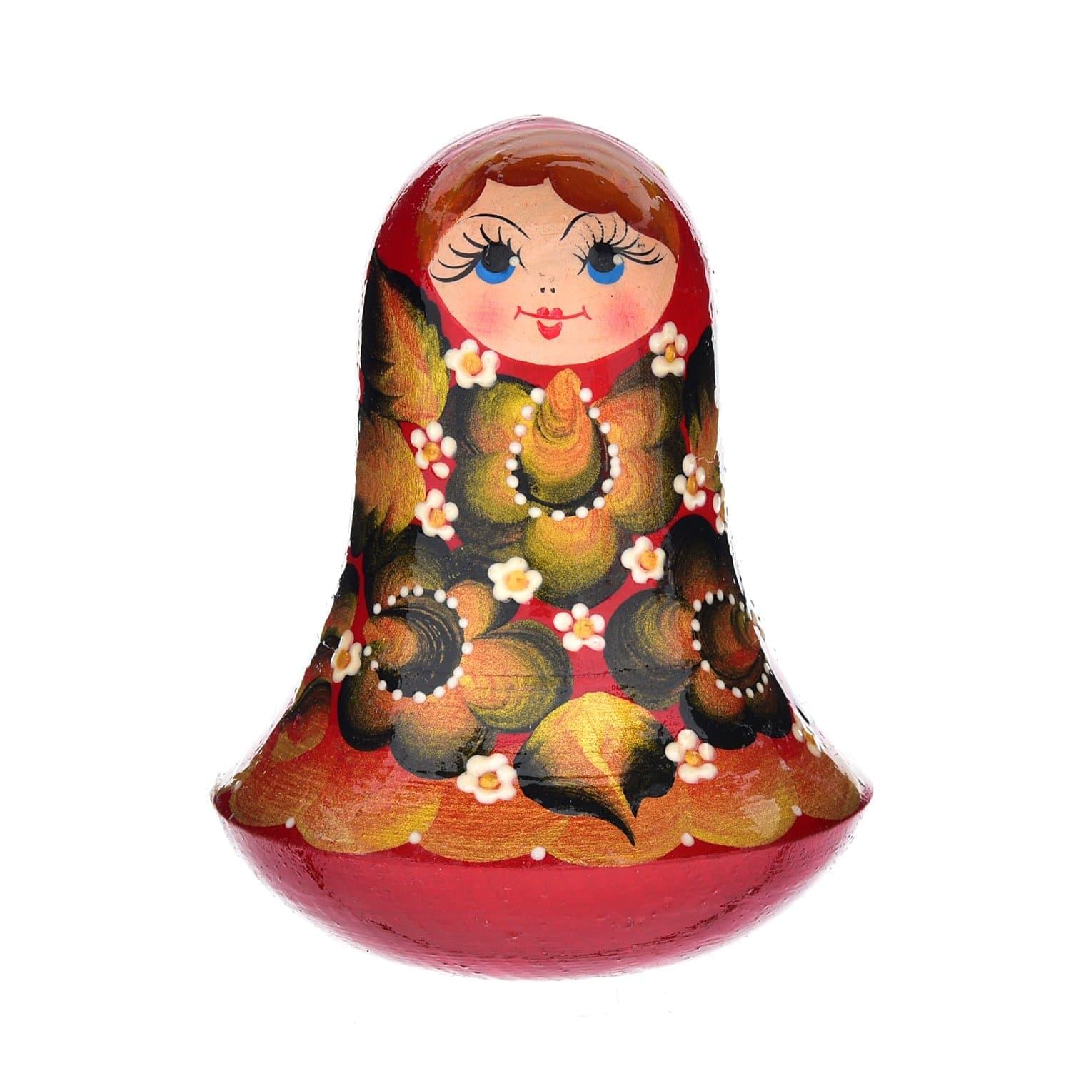 Неваляшка в юбочке напоминает матрешку Как неваляшку ни валяй - она обязательно примет исходное положение. И даст фору многим куклам! Благодаря обтекаемым формам и яркой росписи с цветочным узором эта игрушка всегда обратит на себя внимание и напомнит о дарителе.
