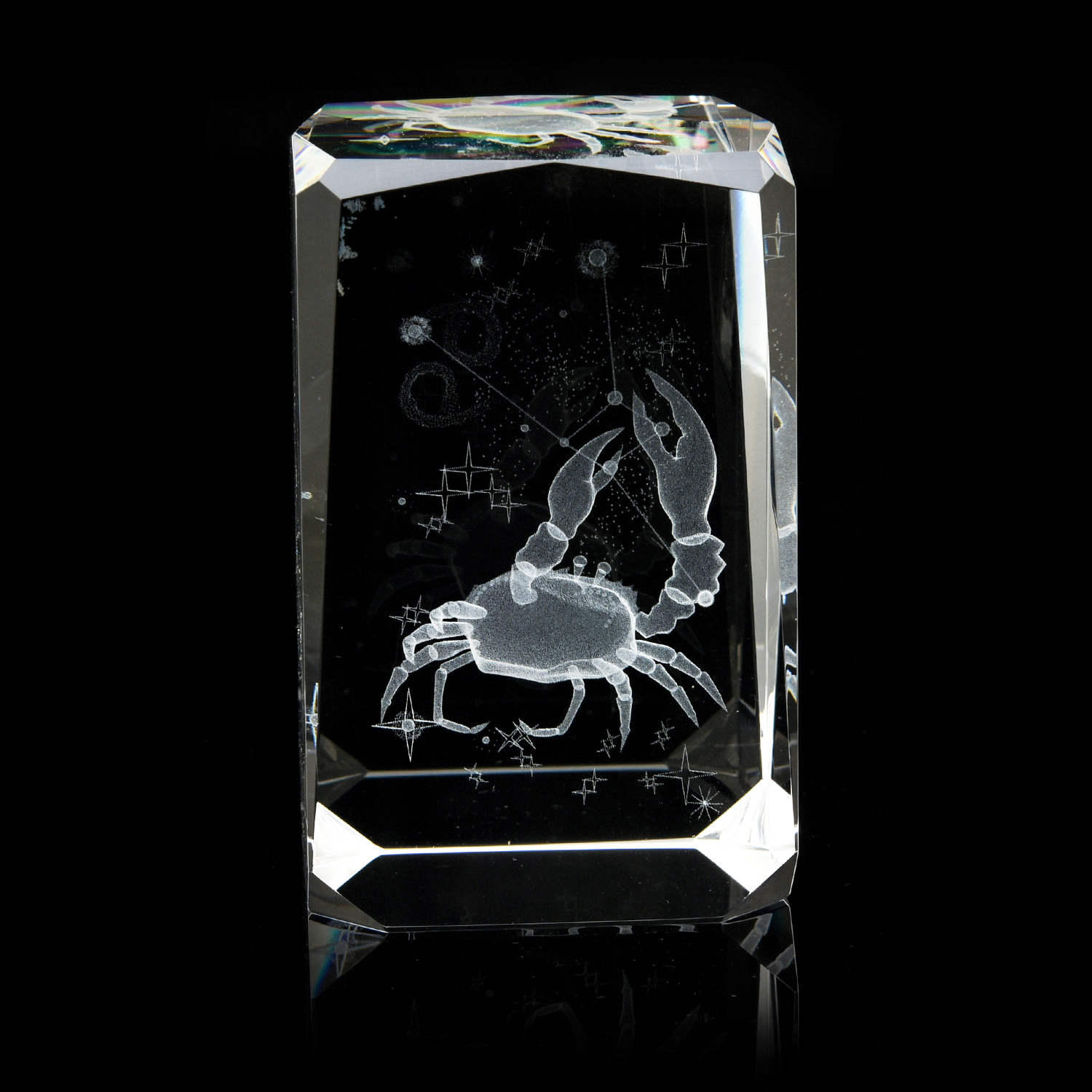Сувенир 21 века с изображением одного из 12 знаков зодиака - Рака - внутри прозрачного куба.