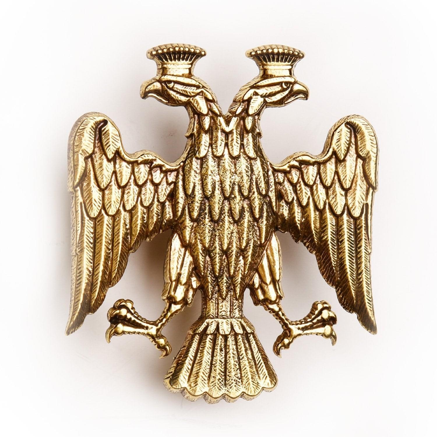 Предлагаем Вам создать уникальную коллекцию державных символов России из высокохудожественных образцов микляихского литья, представленных в виде ходовых сувениров, магнитов. Герб Московского княжества XV века станет предметом любопытства не только для геральдистов, но и дизайнеров, коллекционеров, нумизматов, собирателей орденов и медалей. Магнит в виде коронованного двумя императорскими коронами двуглавого орла с опущенными вниз крыльями отлит вручную и оформлен эффектной и стойкой позолотой. Миниатюрный корпус отлит из бронзы, которая издавна используется художниками и скульпторами для создания эксклюзивных элементов декора и различных предметов обихода. Детали позолочены и тонированы посредством патины с целью придания дополнительных объемов. Это изделие является образцом высокоточного микляихского литья и представляет художественную и коллекционную ценности.