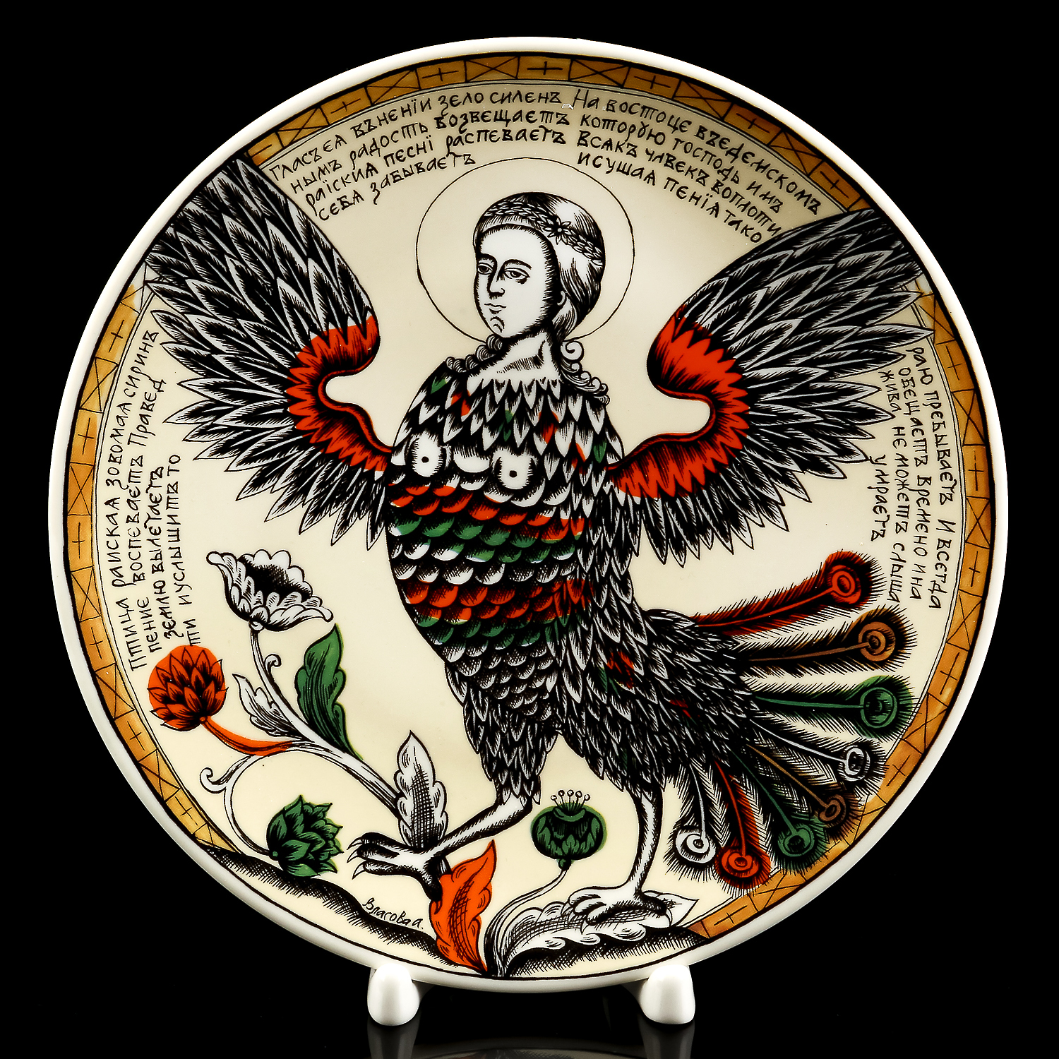 К числу лубочных сюжетов, имеющих отношение к волшебству, относится сирин — сказочная птица с головой и грудью женщины. Не вызывает сомнений, в Россию сирин «прилетел» из Древней Греции: сирены были полуженщинами-полуптицами. О райской птице- сирине говорится, что голос у нее сильный и прекрасный. Своим пением она возвещает праведникам небесную благодать, а грешников на земле зачаровывает.