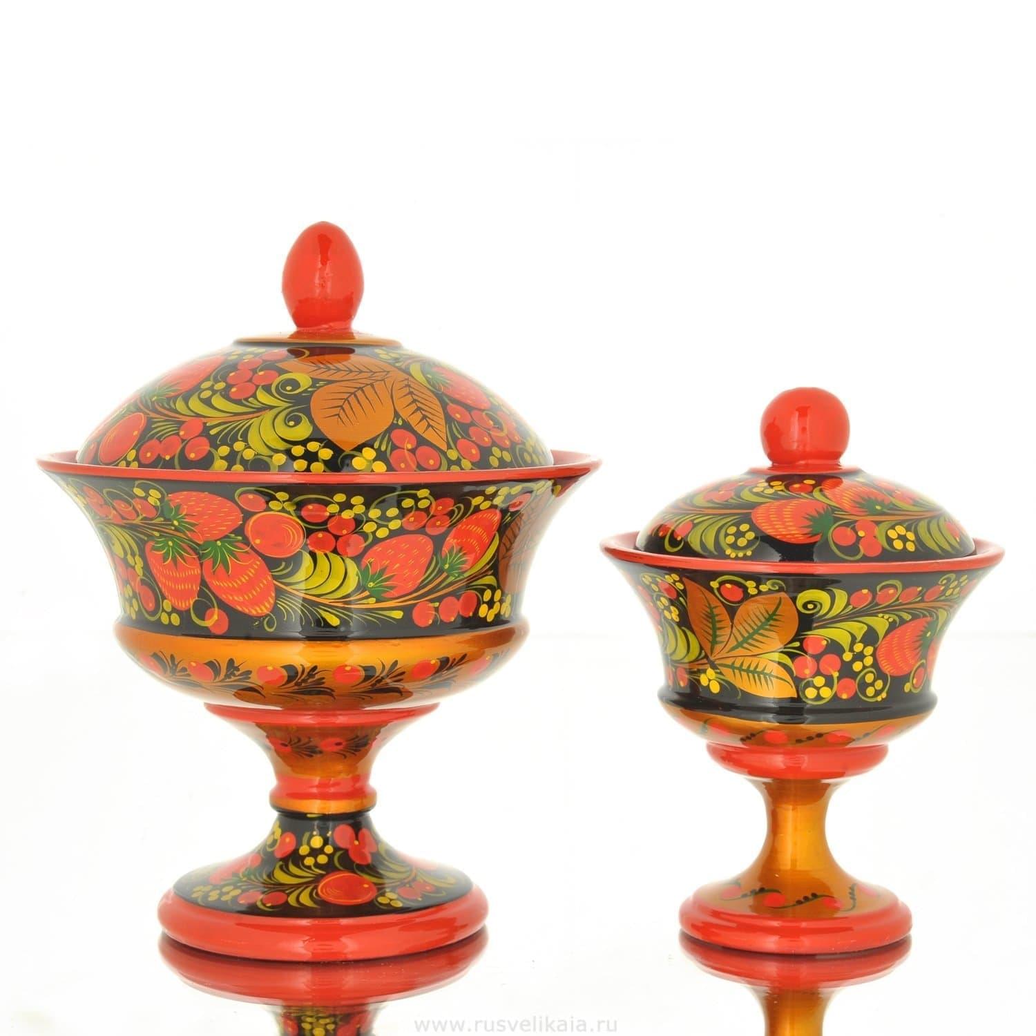 Полная коллекция оригинальных аксессуаров и посуды с хохломской росписью представлена в отдельном разделе на сайте «Руси Великой». В нашем собрании Вы без труда подберете отличный презент ценителю традиционной деревянной посуды и украшений для дома.