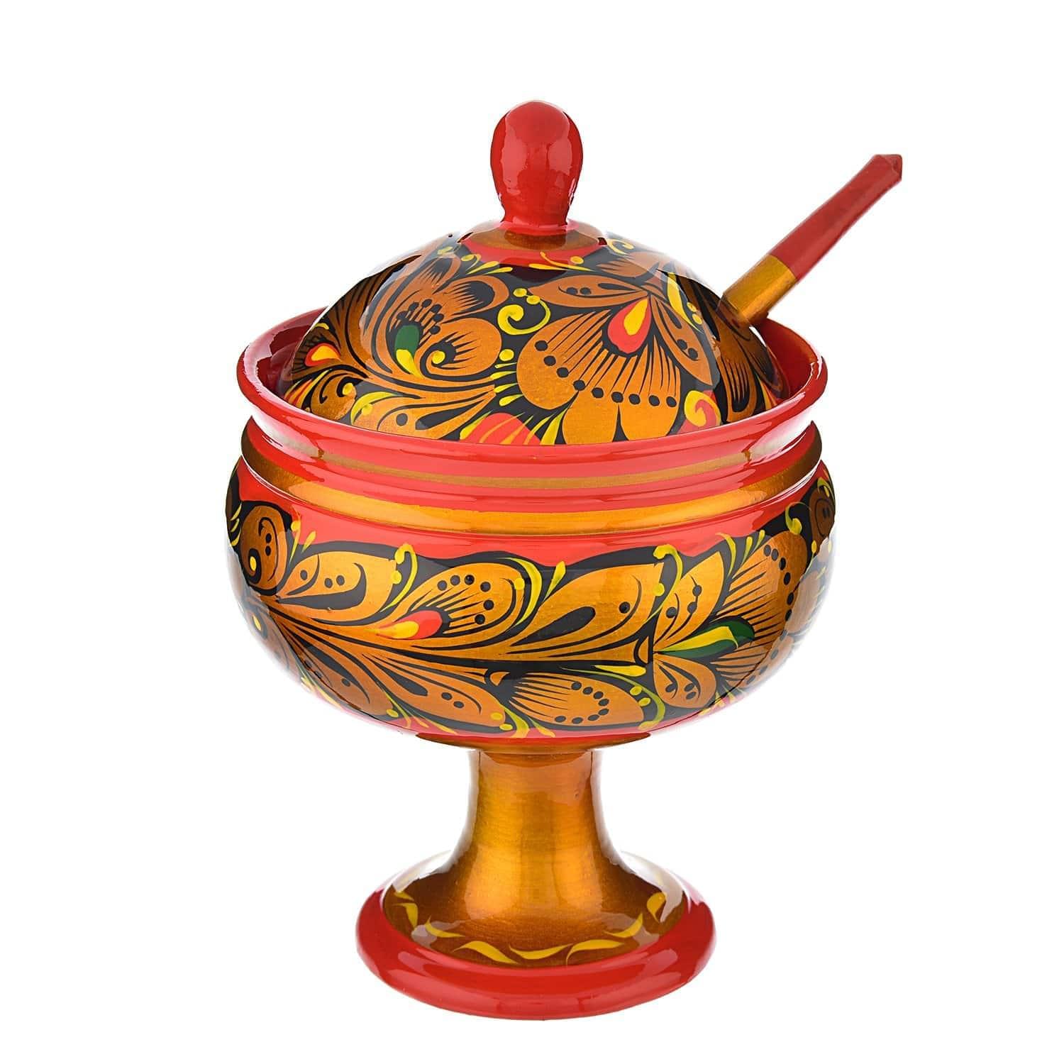 Новинка нашей хохломской коллекции придется по душе любителям чая с вкусным вареньем. Очаровательная деревянная вазочка на тонкой изящной ножке создана по оригинальному авторскому эскизу. Аксессуар создан из экологически чистого материала – натурального дерева.
