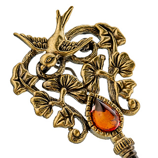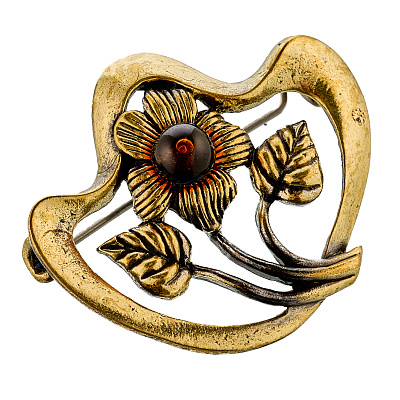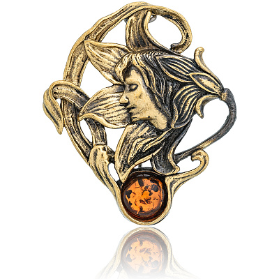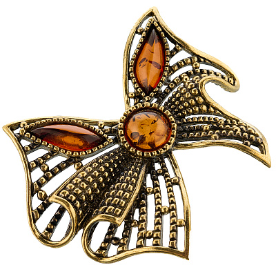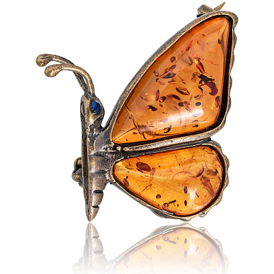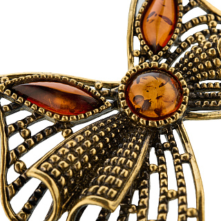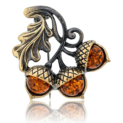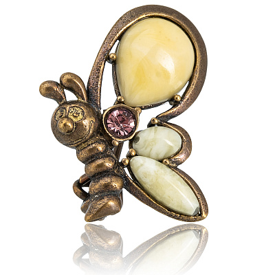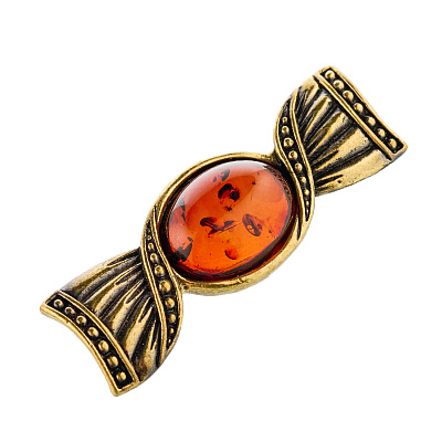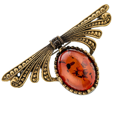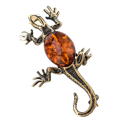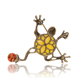 Брошь с янтарной вставкой «Лягушка Пузатик»
