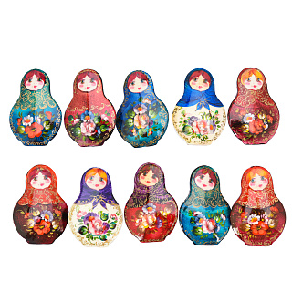 Брошь с ручной росписью «Жостово. Матрешка» (в ассортименте)