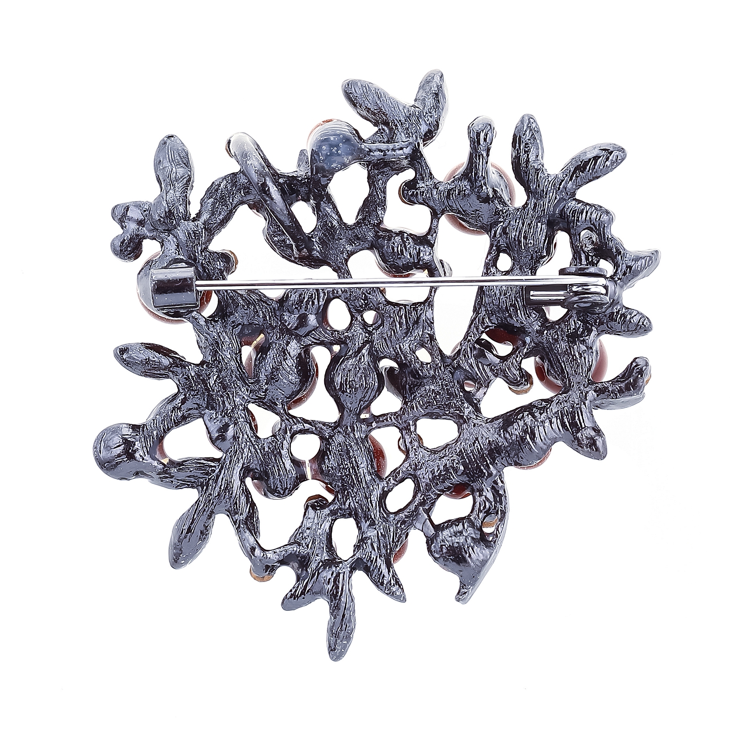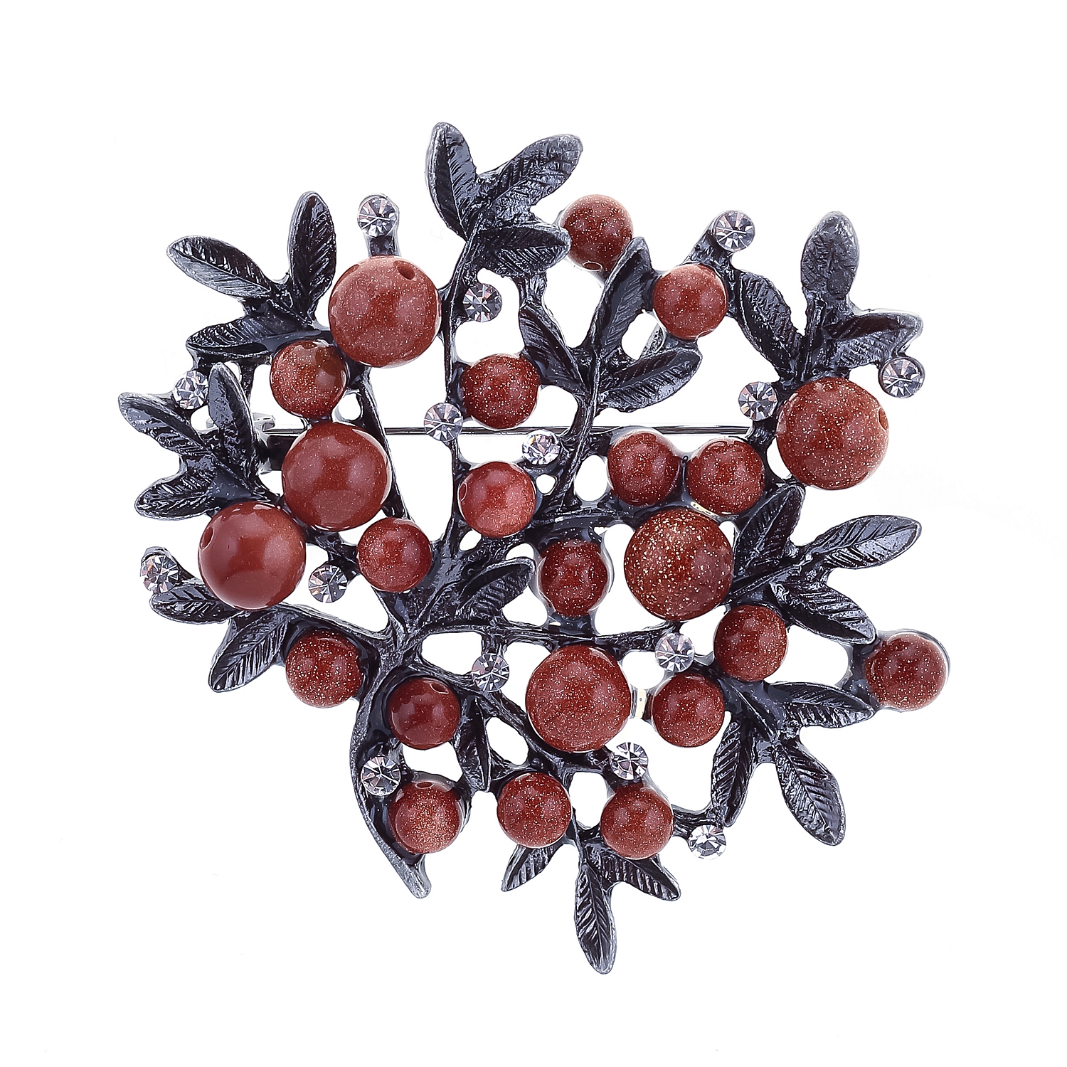 Металлическая брошь с авантюрином и стразами.
