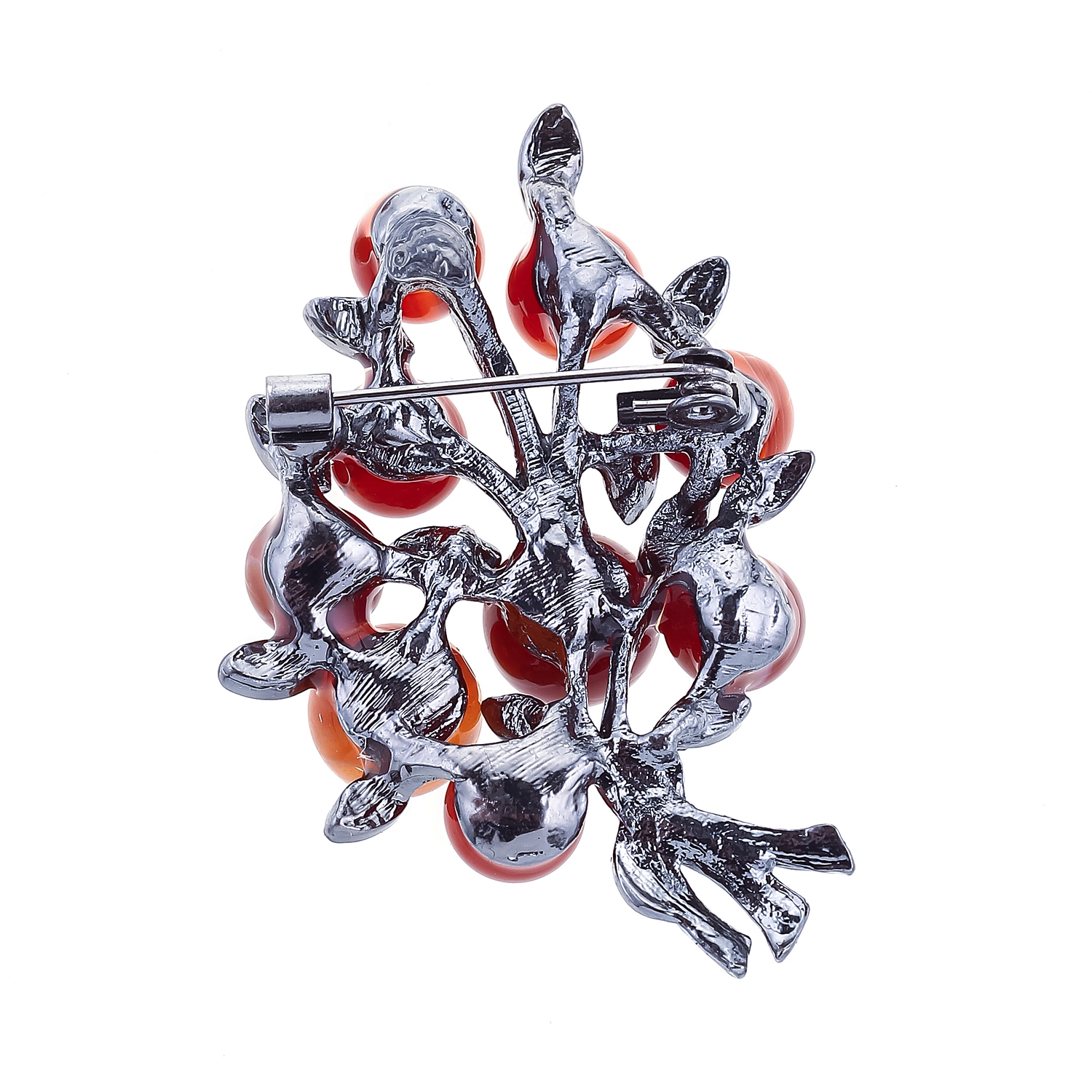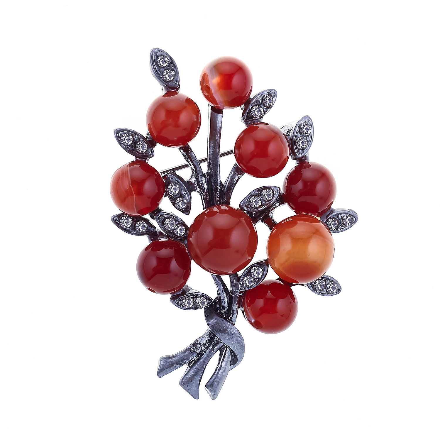Металлическая брошь с сердоликом и стразами.