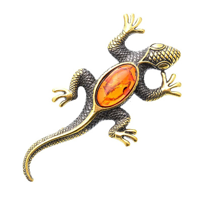 Брошь Ящерица большая (коньячный)