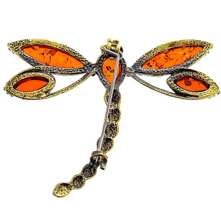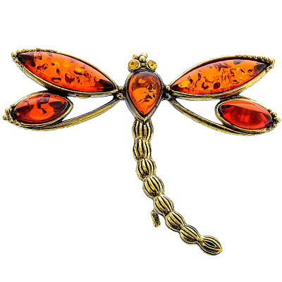 Брошь с янтарной вставкой «Стрекоза Эмма» (коньячный)