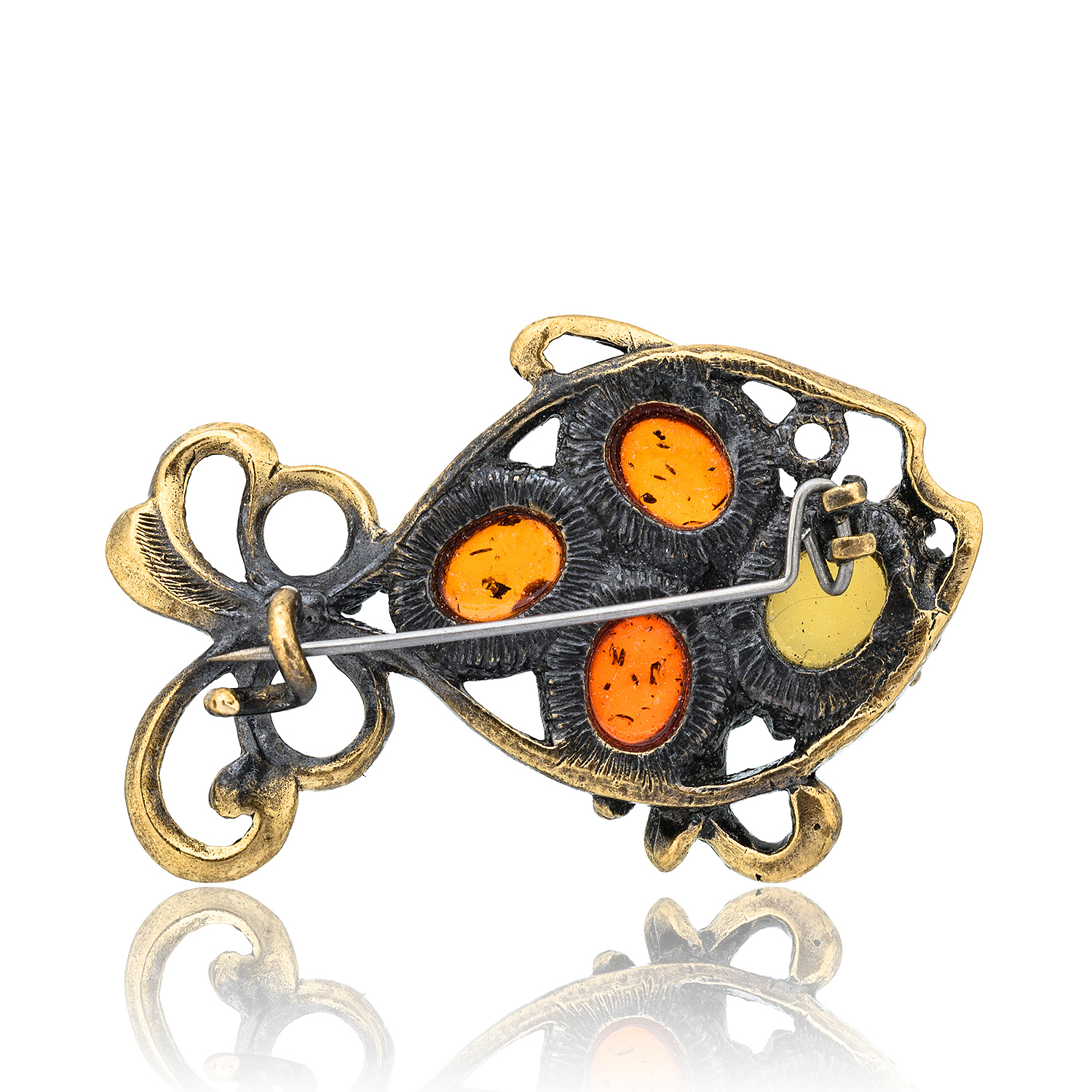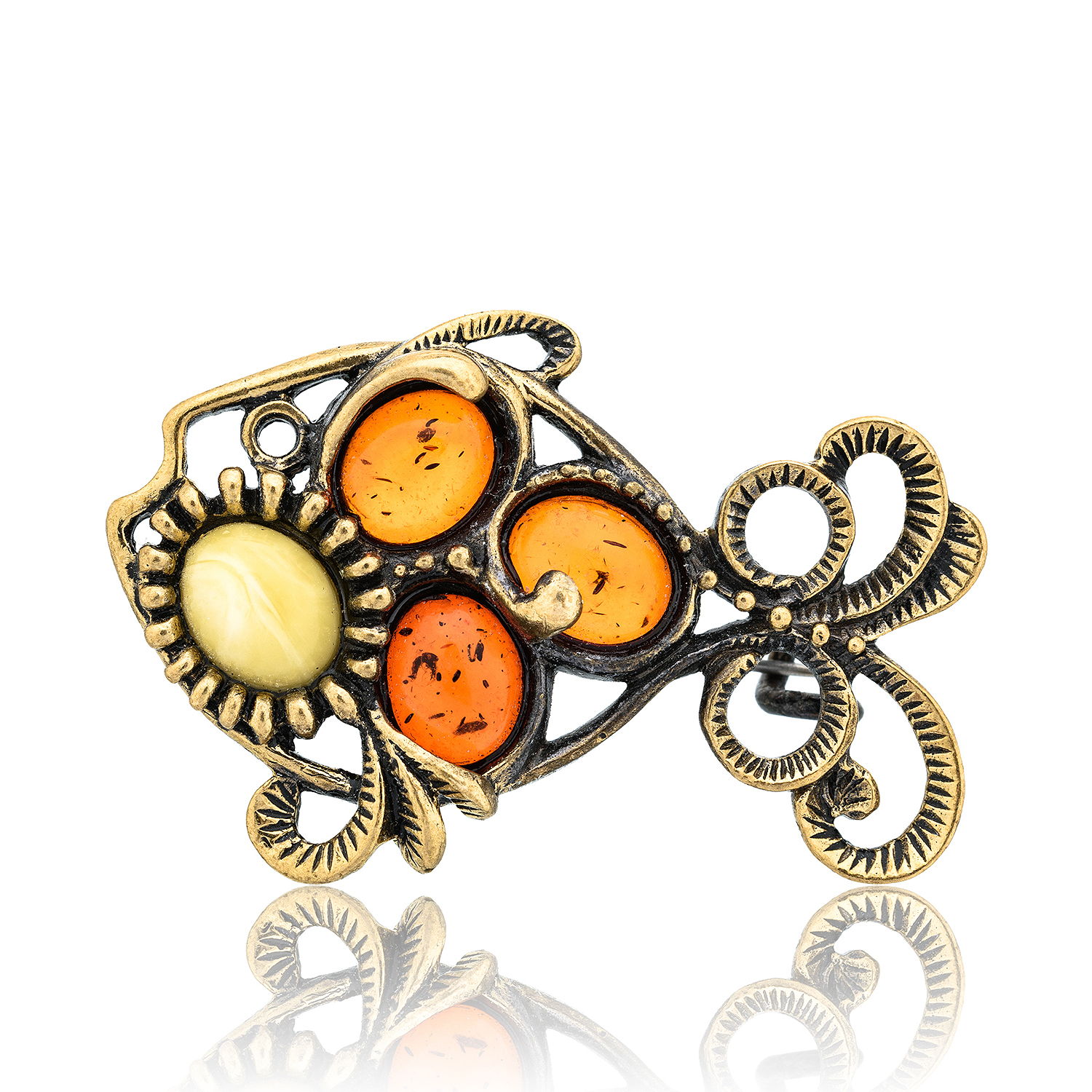 Брошь с янтарем "Рыбка Чешуя".