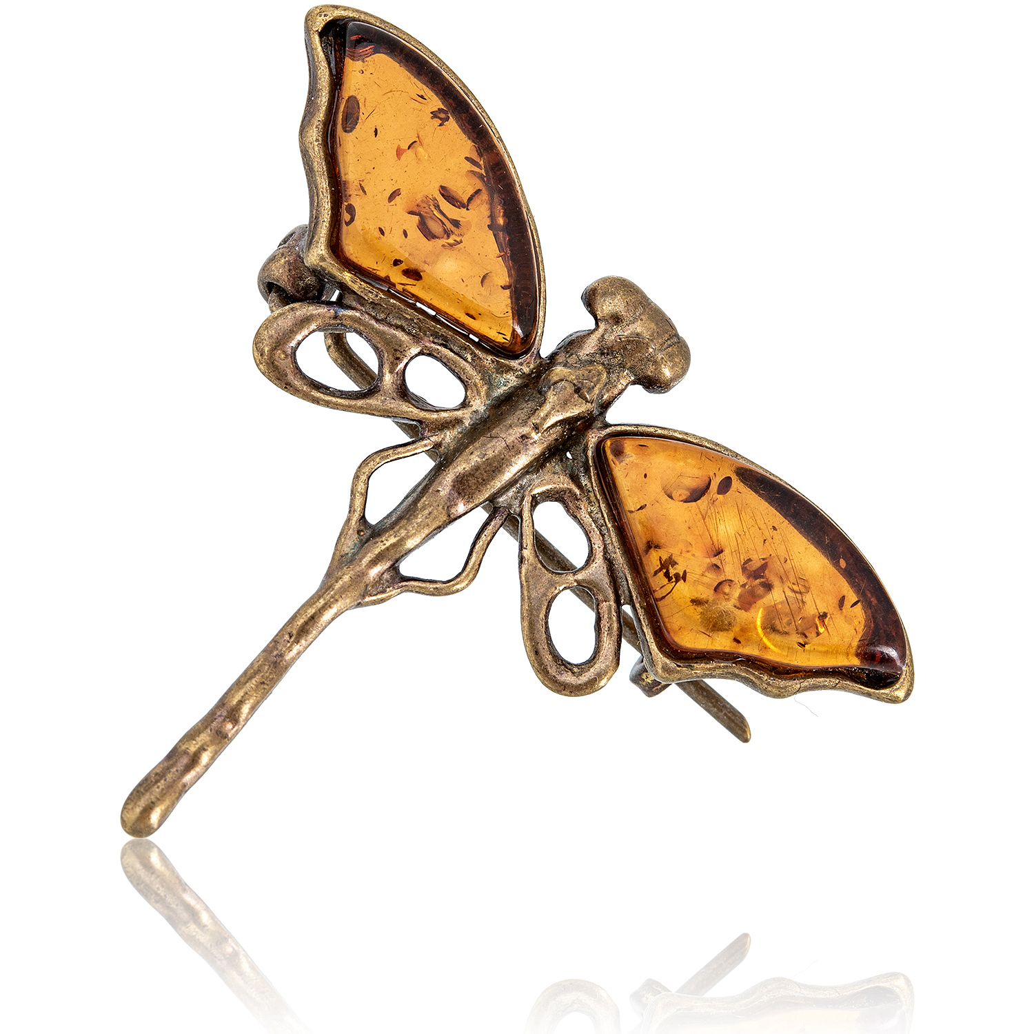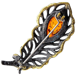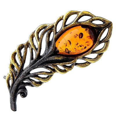 Брошь с янтарной вставкой «Перышко ажурное» (коньячный)