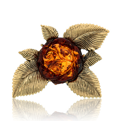 Брошь с янтарем «Розочка»
