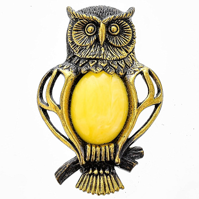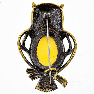 Корпус броши оформлен в соответствии с оригинальным эскизом из металлического медного сплава, латуни - поделочного металла, который ценится ремесленниками всего мира. Латунь оформлена эффектной и стойкой позолотой.