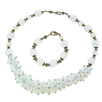 Комплект из бус и браслета из лунного камня