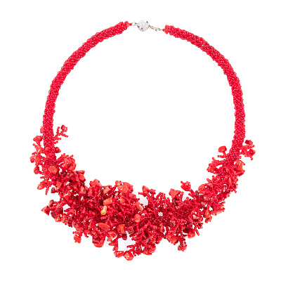 Колье с натуральными камнями «Елочка». Коралл