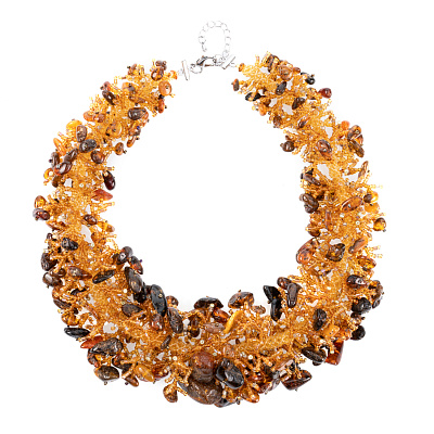 Колье из бисера и янтаря «Мех»