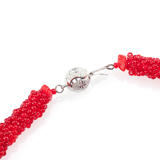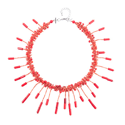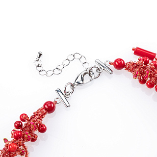 Колье из бисера и камня «Алый мак»