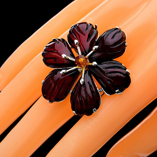 Кольцо с янтарной вставкой