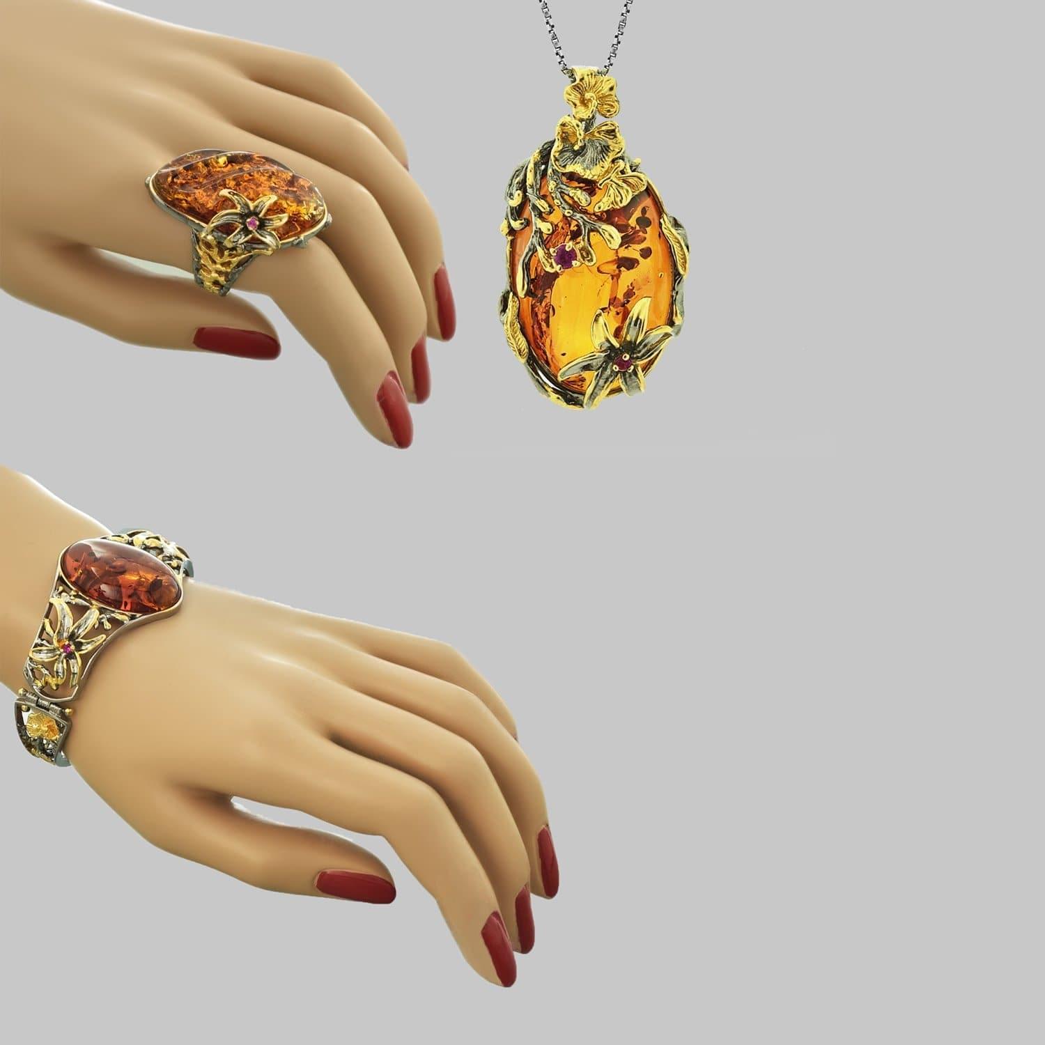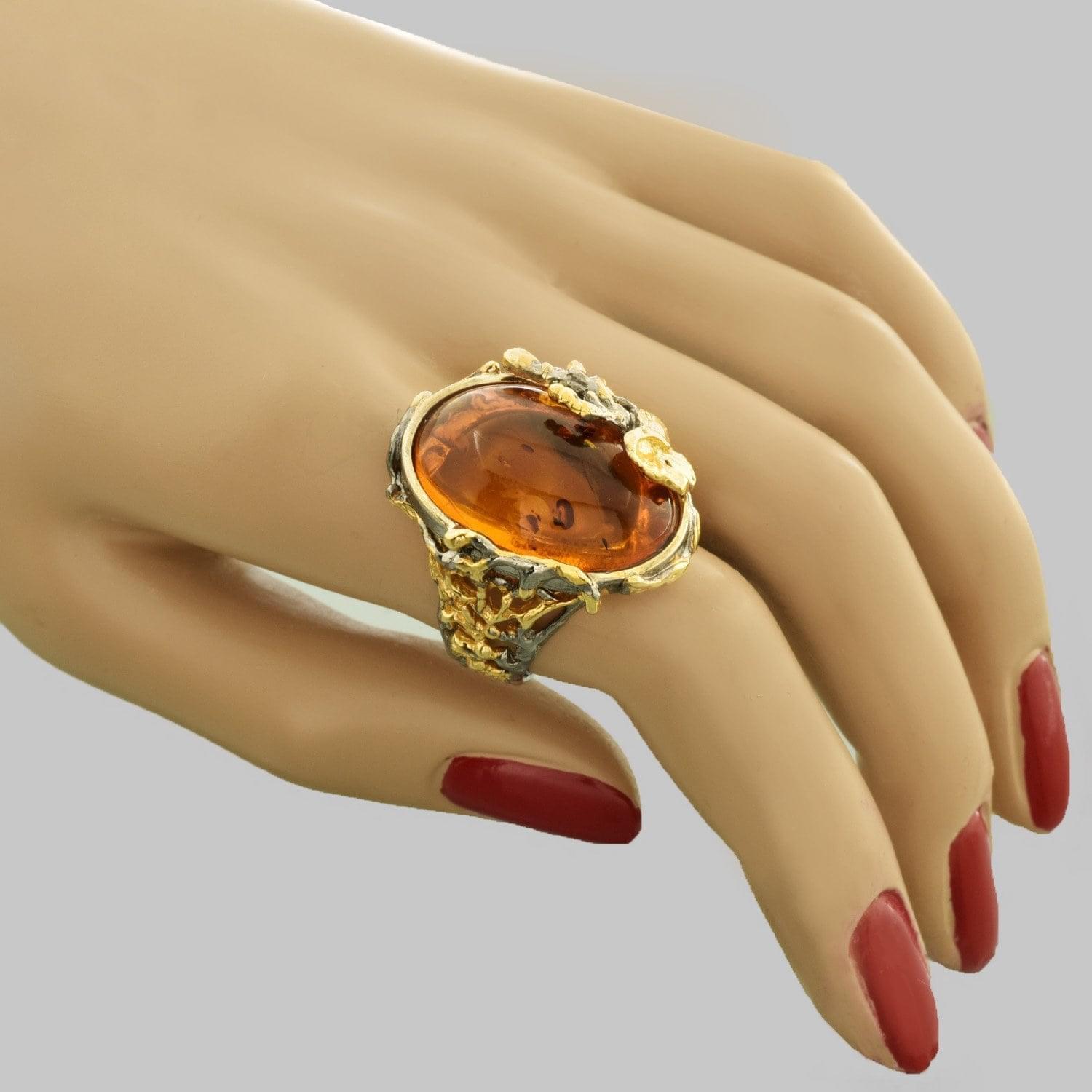 Напомним, что янтарь представляет собой отвердевшую со временем смолу хвойных деревьев. Янтарь усиливает интуицию, дает женщине новое ощущение себя, корректирует репродуктивную системы организма и служит талисманом. Благодаря свойствам камня янтаря, вобравшего в себя за 40-150 тысяч лет энергию стихий, кольцо усилит природный магнетизм и природное очарование женщины.
