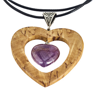 Кулон из карельской березы и горного хрусталя «Два сердца»