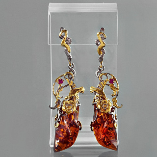 Серьги с янтарём «Элина» 22,22 гр. Серебро 925*