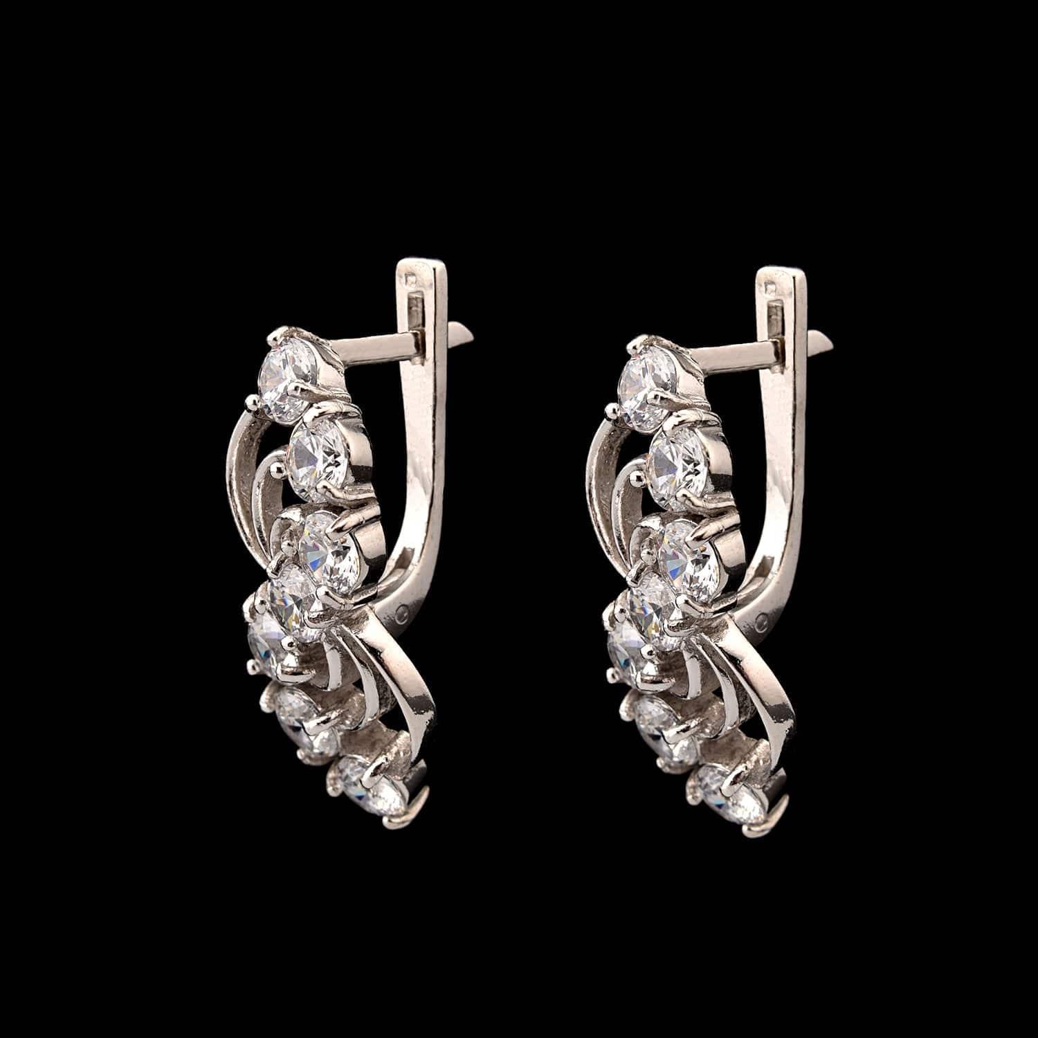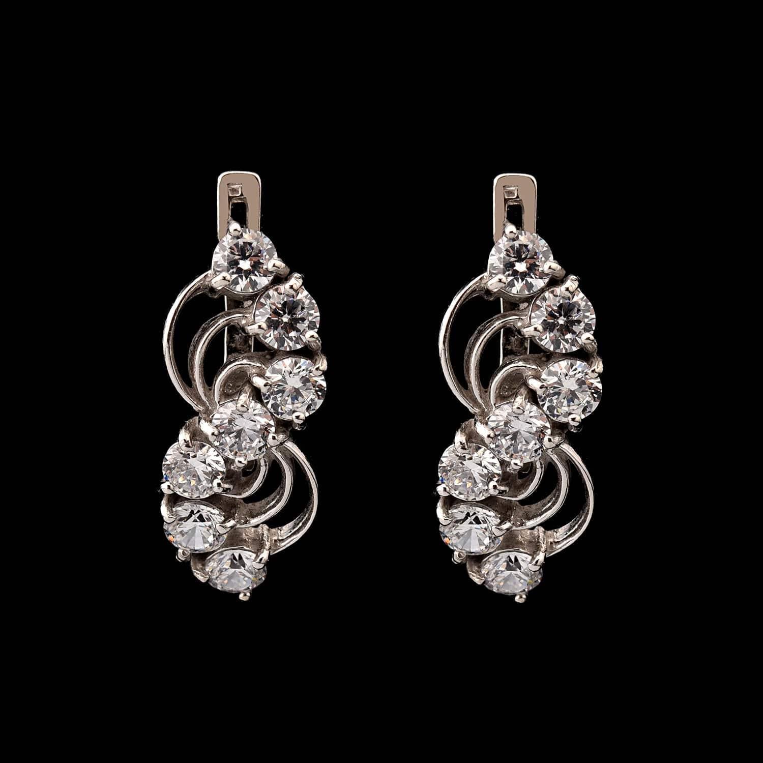 Модель серег из драгоценного металла-самородка серебра вызывают в воображении символ спирали, воронки, одновременно галактическую бездну и созвездие-змейку. Граненые фианитовые сияющие вставки симметрично располагаются змейкой, притягивая к себе внимание магнетическим образом. Серьги с камнями и сияющими кристаллами усиливают энергетику обладательницы, ее природный магнетизм и очарование. Серебро в древности почиталось выше золота. Его защитные, целебные свойства были известны царским особам, окружавшим себя вещами из серебра. Серебро во все времена использовалось художниками, скульпторами и ювелирами для создания изделий, передаваемых по наследству, являющихся фаворитами личных коллекций украшений и аксессуаров. В качестве вставки для каждой серьги взят полудрагоценный камень фианит. Предложим подарочную коробочку для этой пары. Материал: серебро 925, фианиты. Вес: 6,95 гр.
