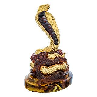 Змея Символ 2025 года. Скульптура из янтаря «Королевская кобра»