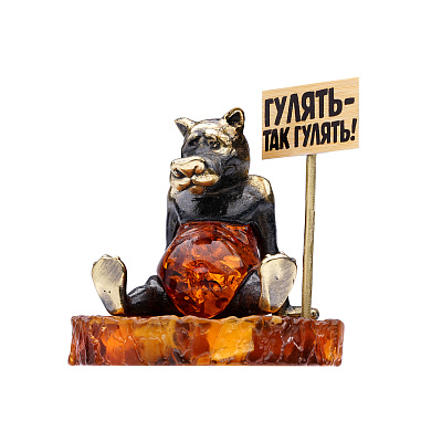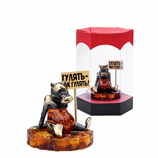 Бронзовая статуэтка на янтарной подставке «Волк. Хорошо жить - еще лучше!»